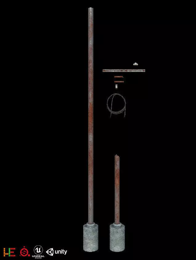 HIE Game Ready Utility Pole Set Low-poly 3D model