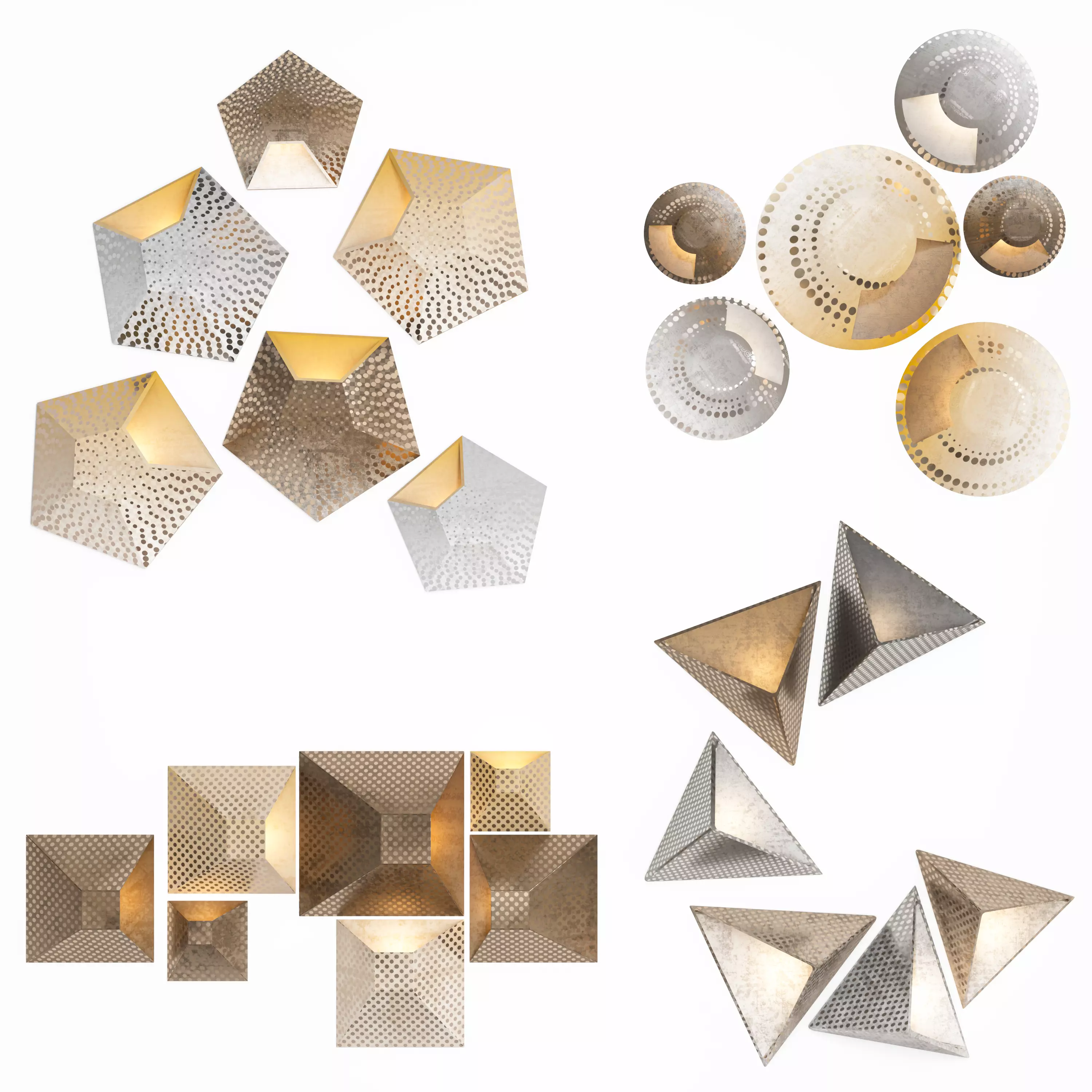 4 set of wall light in square, triangle, circle and n-gon shapeIn archive we have:Format: 3ds max2015 + FBXrender: vray + corona
