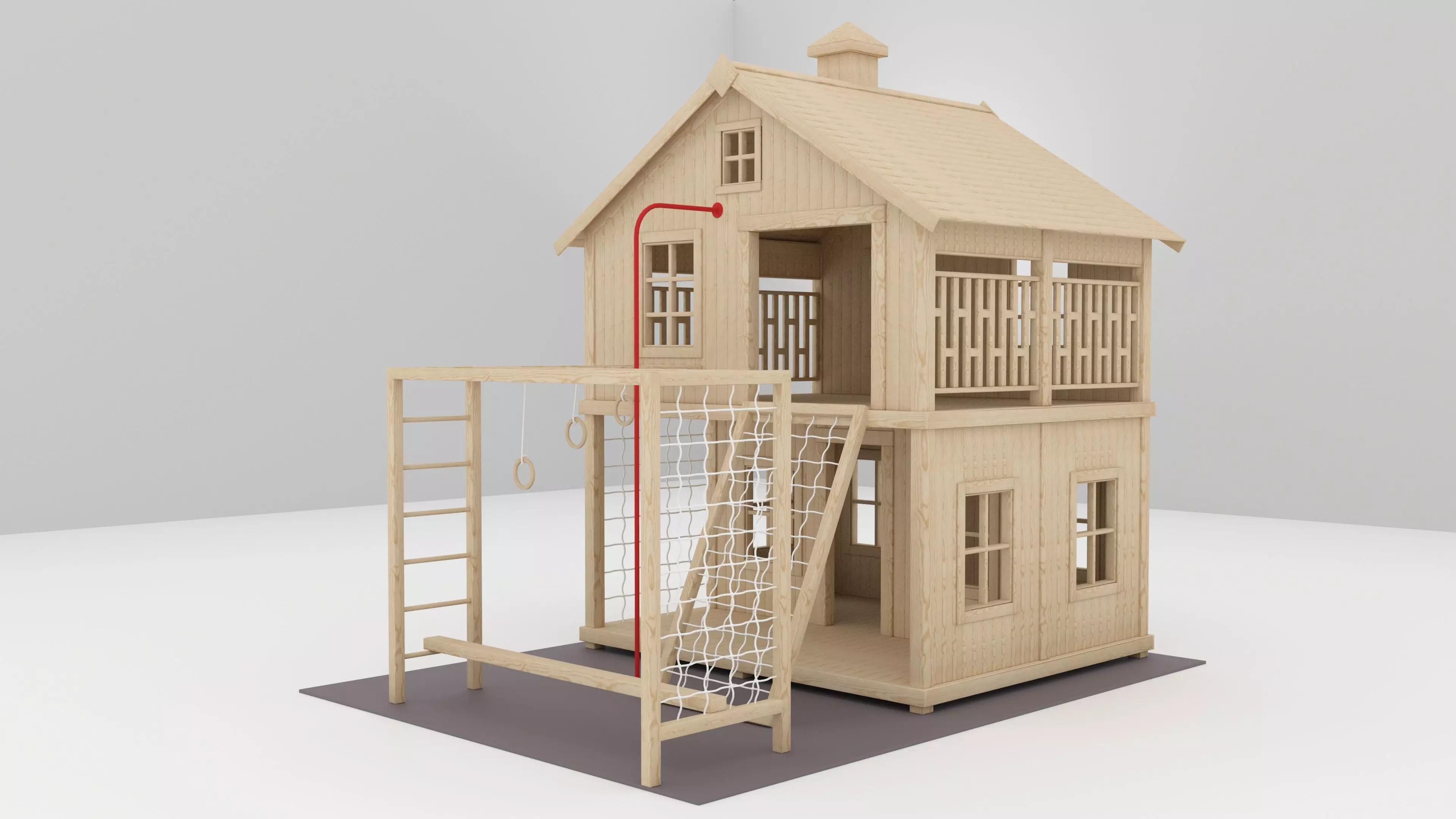 Detailed 3D Model of a Deluxe Two-Story Wooden Playhouse and Outdoor Playset