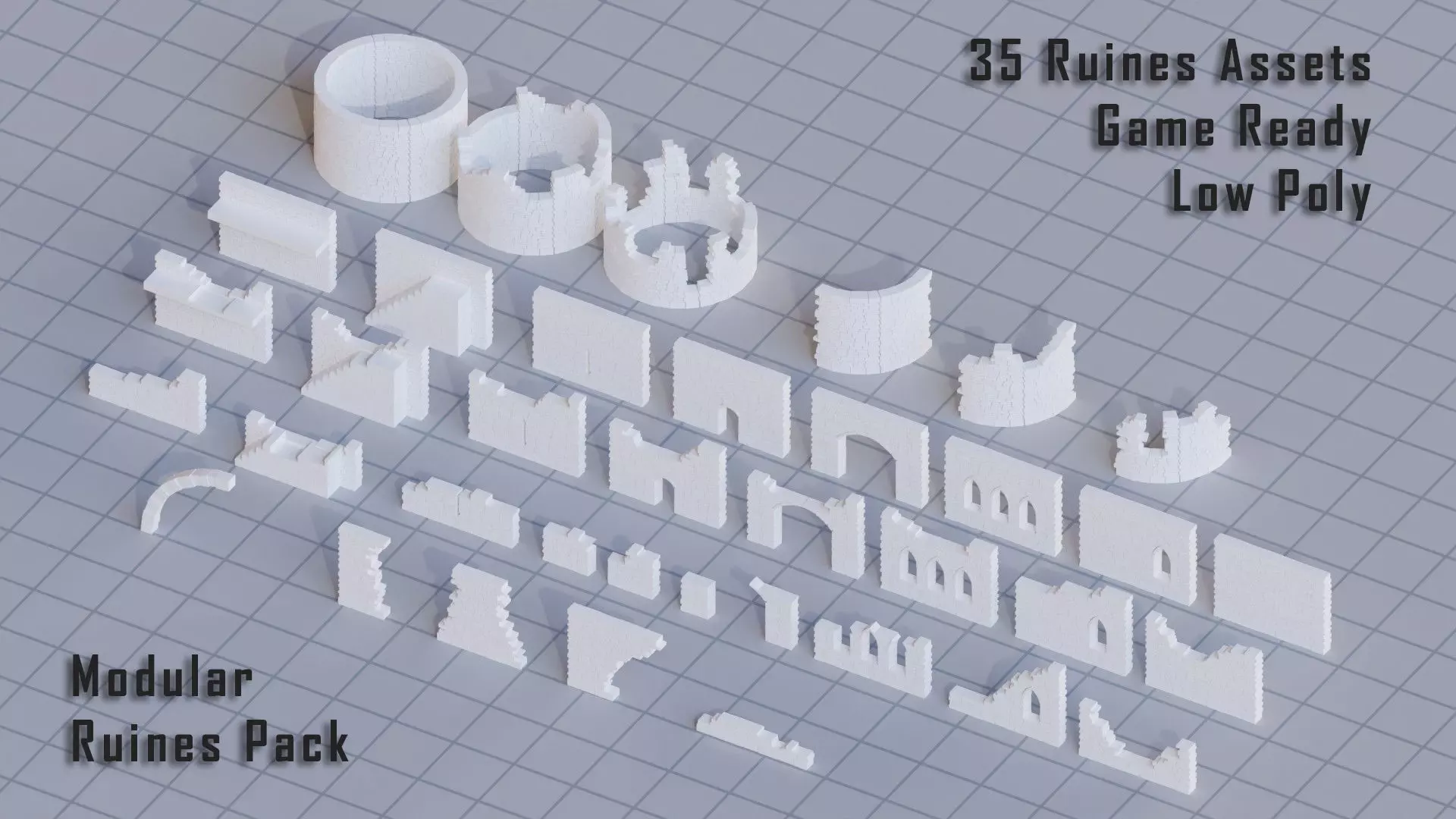 35 Modulars game assets ruines Low-poly 3D model