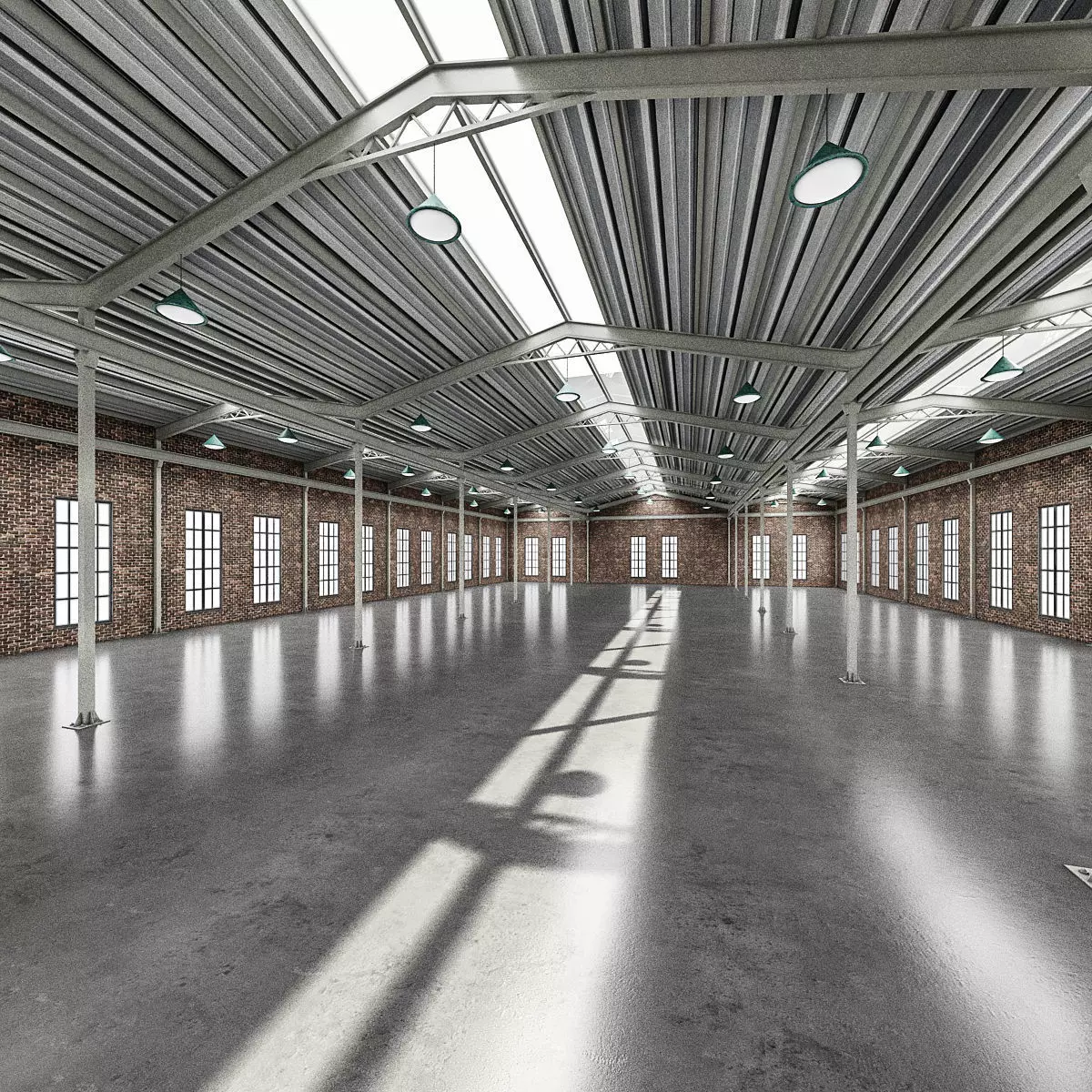 3D low poly factory empty warehouse with windows Low-poly 3D model