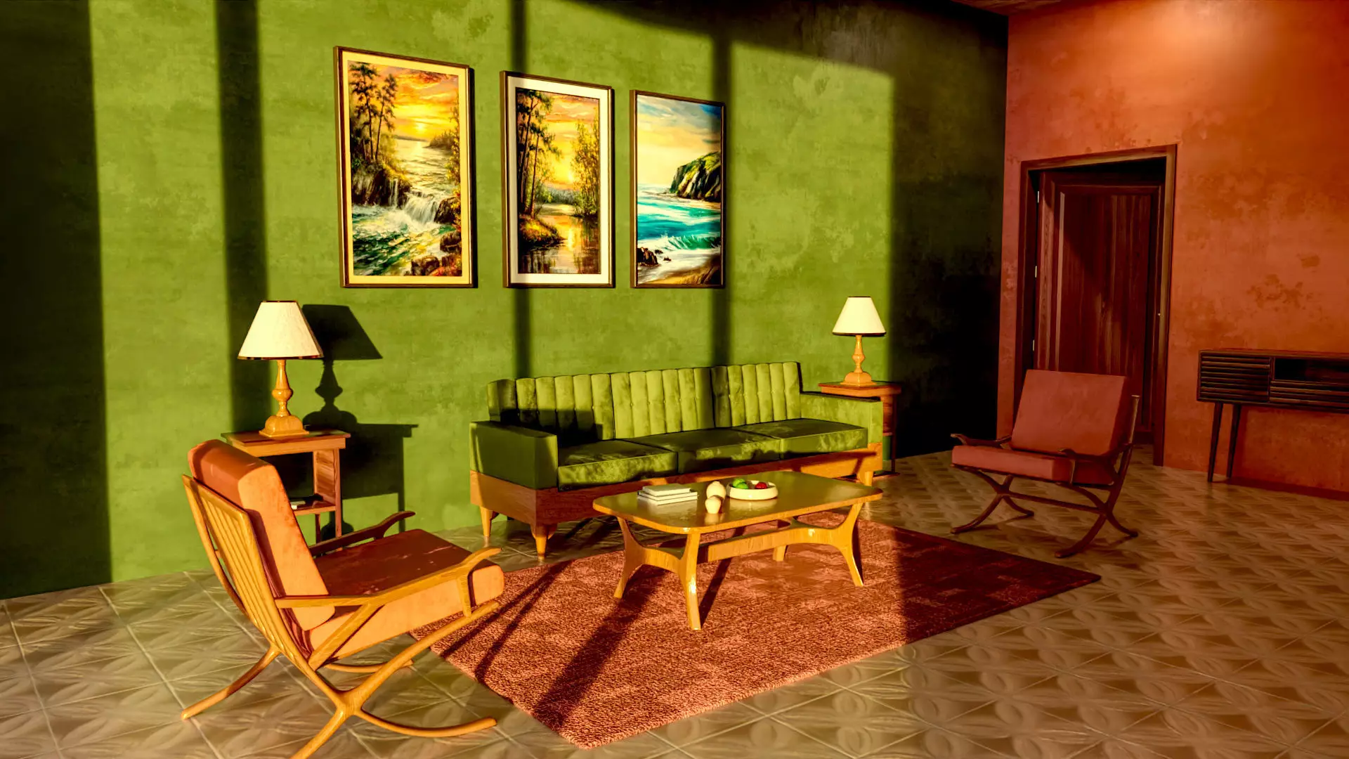 Step back in time with the 70s Living Room, a meticulously crafted 3D environment model for DAZ Studio. This retro-themed living space captures the essence of the 1970s with authentic details and vibrant colors. The room features a mix of mid-century modern furniture, including a plush shag carpet, bold patterned wallpaper, and iconic decor items like lava lamps and vintage posters. The space is bathed in warm, earthy tones, complemented by pops of orange, green, and brown. Each element, from the low-slung sofa to the classic rotary phone, is designed to evoke a sense of nostalgia and provide a perfect backdrop for your retro-themed renders.