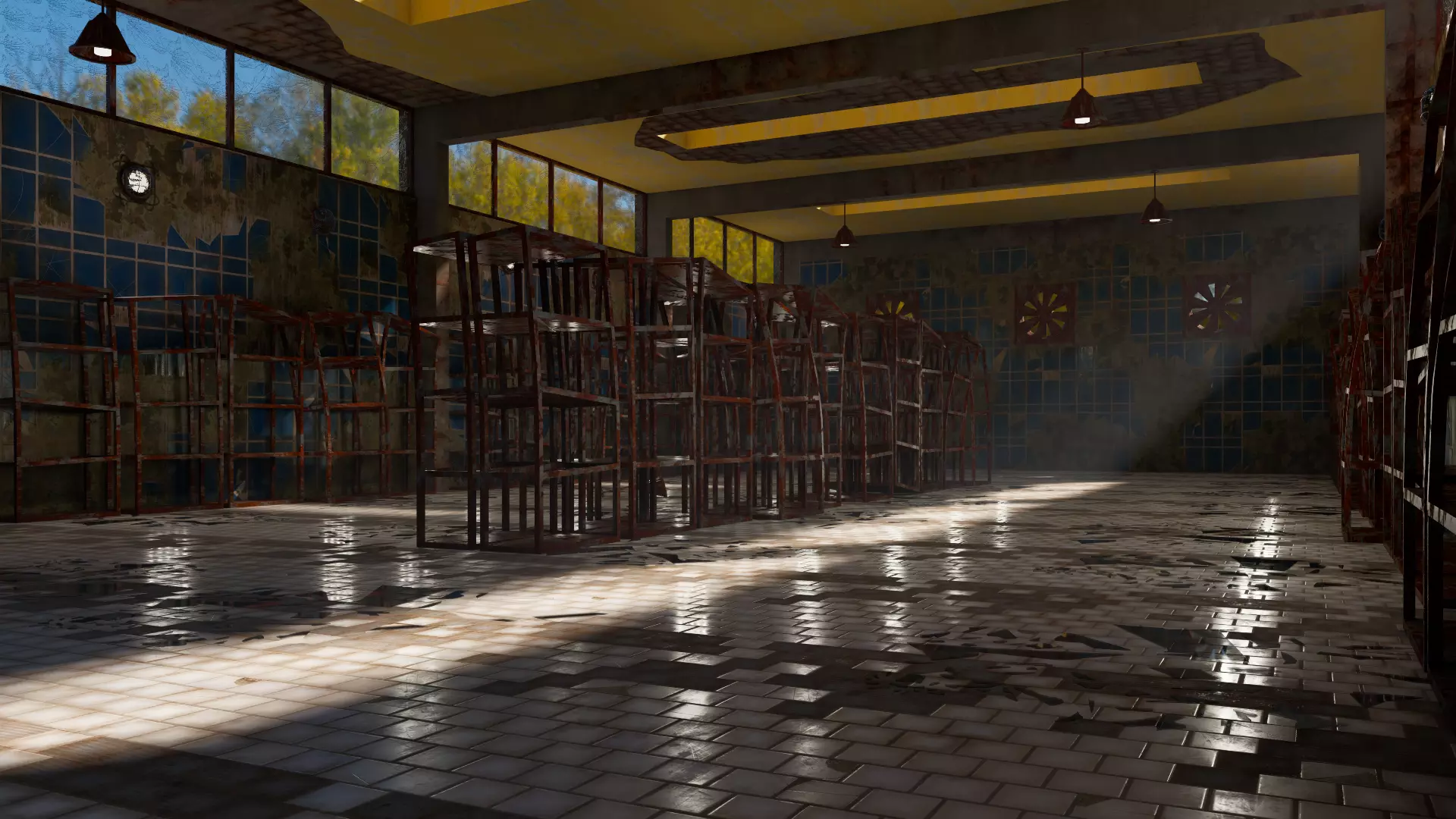 An abandoned warehouse model measuring 15 meters wide, 30 meters long, and 6.50 meters high. This model contains damaged, rusted, and dirty objects and features. Metal shelves, lighting fixtures, broken windows, doors, and fans. You can use this model in any film, game, or project scene you choose. The necessary file formats are uploaded. Rendered images and a video are included for illustrative purposes. Thank you for your interest. Please leave a like and a comment.