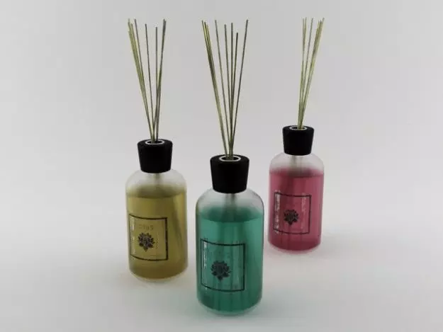 A collection of 3 air refreshener diffuser in 3 different color with texture,material and uwv.