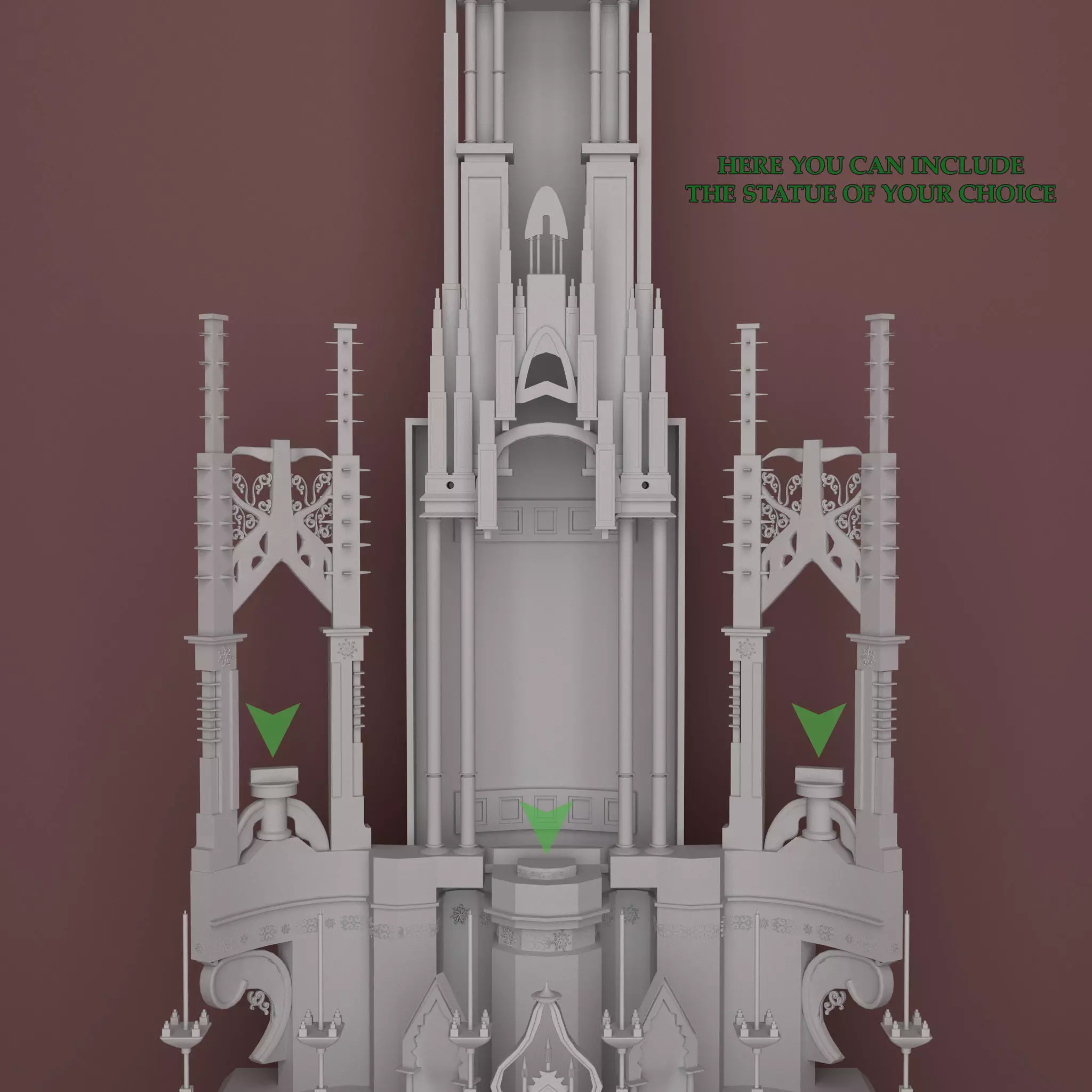 Intricately designed 3D altar model, perfect for sacred or spiritual settings. Ideal for use in game environments, architectural visualization, or fantasy scenes, featuring detailed craftsmanship and a mystical aura. You have the flexibility to add any 3D statue of your choice.