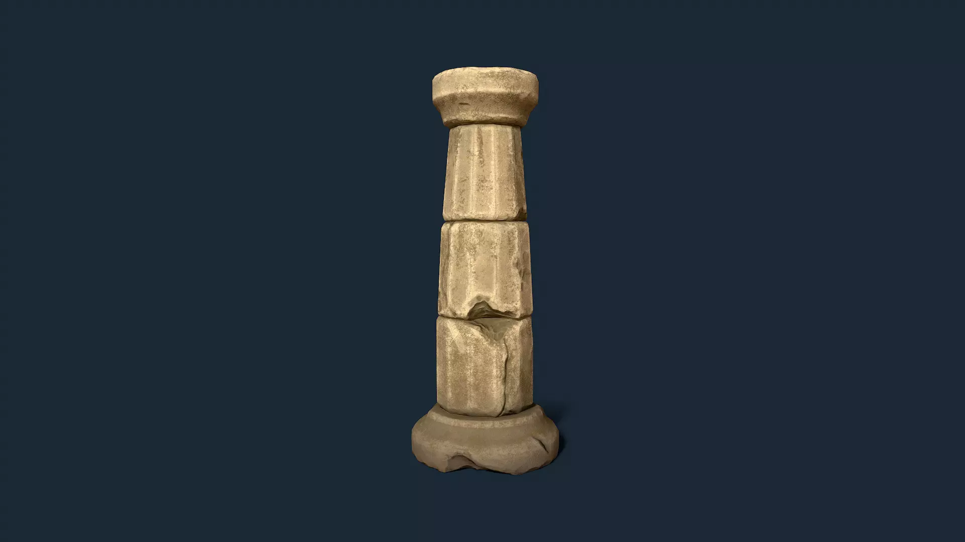 Model of an ancient damaged pillar, doesn't contain any n gons, has optimal topology. Archives contain such 2k textures: -Base color map -Metallic map -Normal map (OpenGL) -Roughness map. I made two different texture sets for this model and put them in two archives Pillar textures and Pillar Textures Ancient.