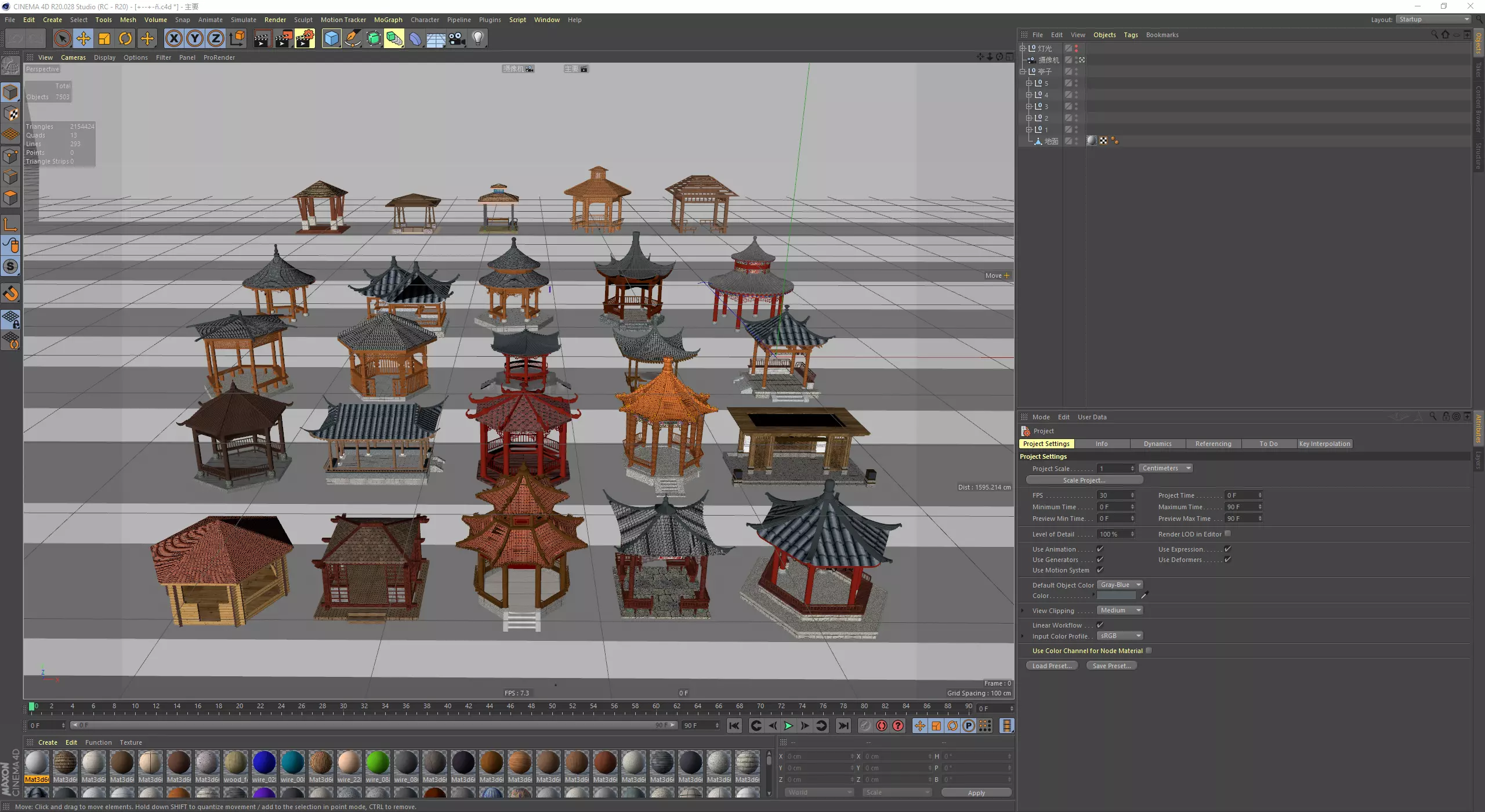 The model has material settings that define how surfaces look (color, shine, transparency, etc.).