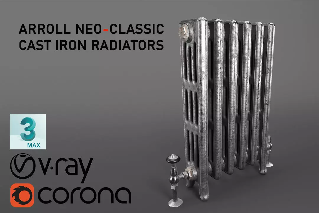 This is a 3d asset that includes 3 columns neo-classic cast iron radiator ( Arroll brand), which is created in 3ds Max. The file contains two different types of iron materials, which are produced via Substance Painter. All Parts are textured and modeled in quad meshing with UV maps. This product is ready to render through either Corona renderer or Vray. Also, it has other format files such as .fbx and .obj.