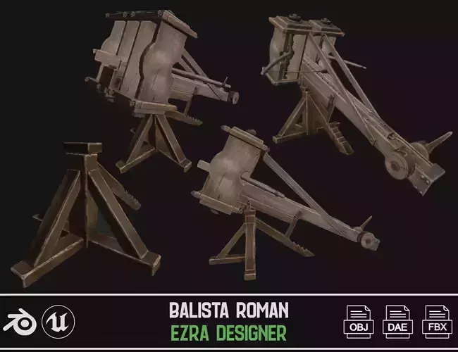 Plongez dans la grandeur de la Rome antique avec notre modèle 3D méticuleusement conçu d'une baliste romaine. Ce modèle authentique reproduit la prouesse technique de l'artillerie romaine, avec des détails complexes et une précision historique. Que vous soyez un passionné d'histoire, un amateur de modélisme, ou que vous souhaitiez simplement ajouter un morceau de l'ancienne guerre à votre collection, cette baliste romaine en 3D est le choix parfait.