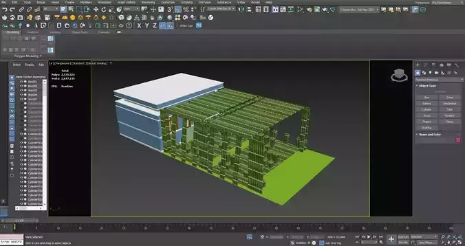 The model has material settings that define how surfaces look (color, shine, transparency, etc.).