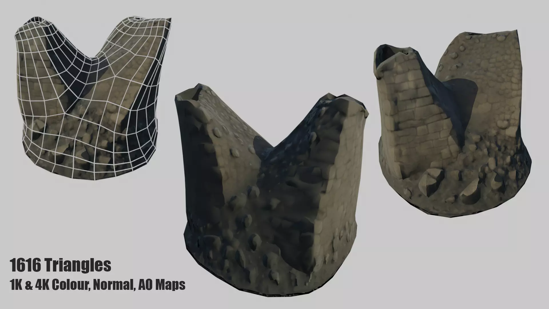 Low Poly PBR bastion rubble model made for universal engines.Realism and stylization combined to create a versatile piece of medieval debris.Scaled for game engines & centered pivot.Renamed mesh/materials.