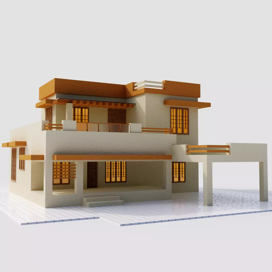 The model has material settings that define how surfaces look (color, shine, transparency, etc.).