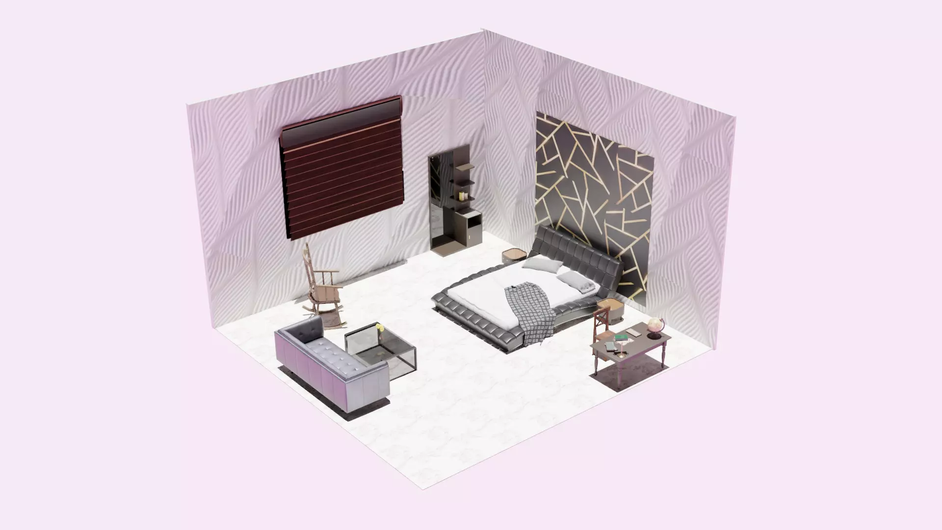 The model has material settings that define how surfaces look (color, shine, transparency, etc.).