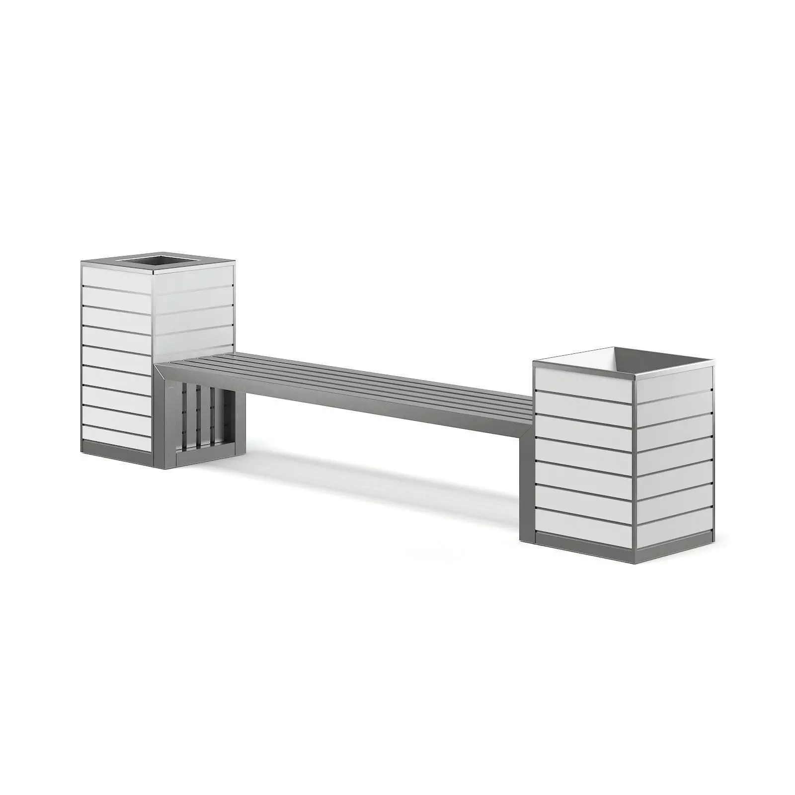 Metal bench with recycle bin 3d model. Compatible with 3ds max 2010 (V-Ray, Mental Ray, Corona) or higher, Cinema 4D R15 (V-Ray, Advanced Renderer), FBX, OBJ and Unreal Engine.