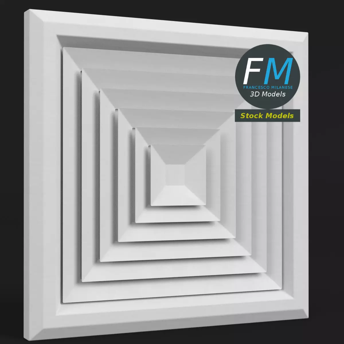 Ceiling air vent 3D Model. Production-ready 3D Model, with PBR materials, textures, non overlapping UV Layout map provided in the package.Quads only geometries (no tris/ngons).Easily customizable: UV unwrapped geometries, so you can create new Textures (or modify the existing ones) using the UV Layout maps provided in the package (as png with alpha).Each Object, Material or Texture provided in the package has a unique, meaningful name.Made in Blender (Cycles / Eevee materials) then exported to OBJ and FBX; materials and textures made in Substance Painter, exported for PBR, V-Ray, Unity, Unreal.PROMO IMAGES: the first image has been rendered in Cycles (or Eevee) for Blender; in particular, you can find 11+ promo images in this description: