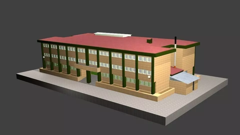 Colegio de tres plantas completo. Cada planta está unida a un empty para poder moverla independientemente.Es ideal para hacer recorridos virtuales, para usarlo en educación para orientación espacial.Está totalmente construido por dentro: aulas, despachos, salón de actos y servicios.