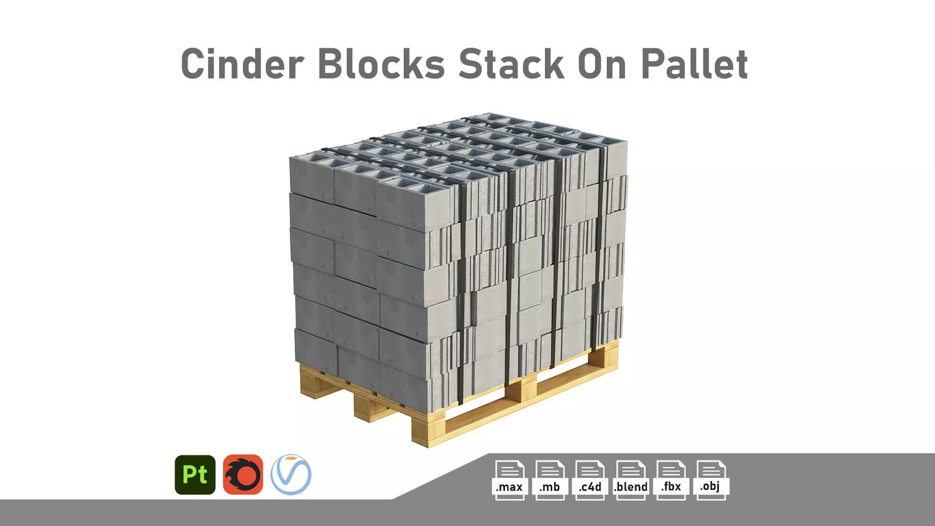 Cinder Blocks Stack On Pallet Low-poly 3D model