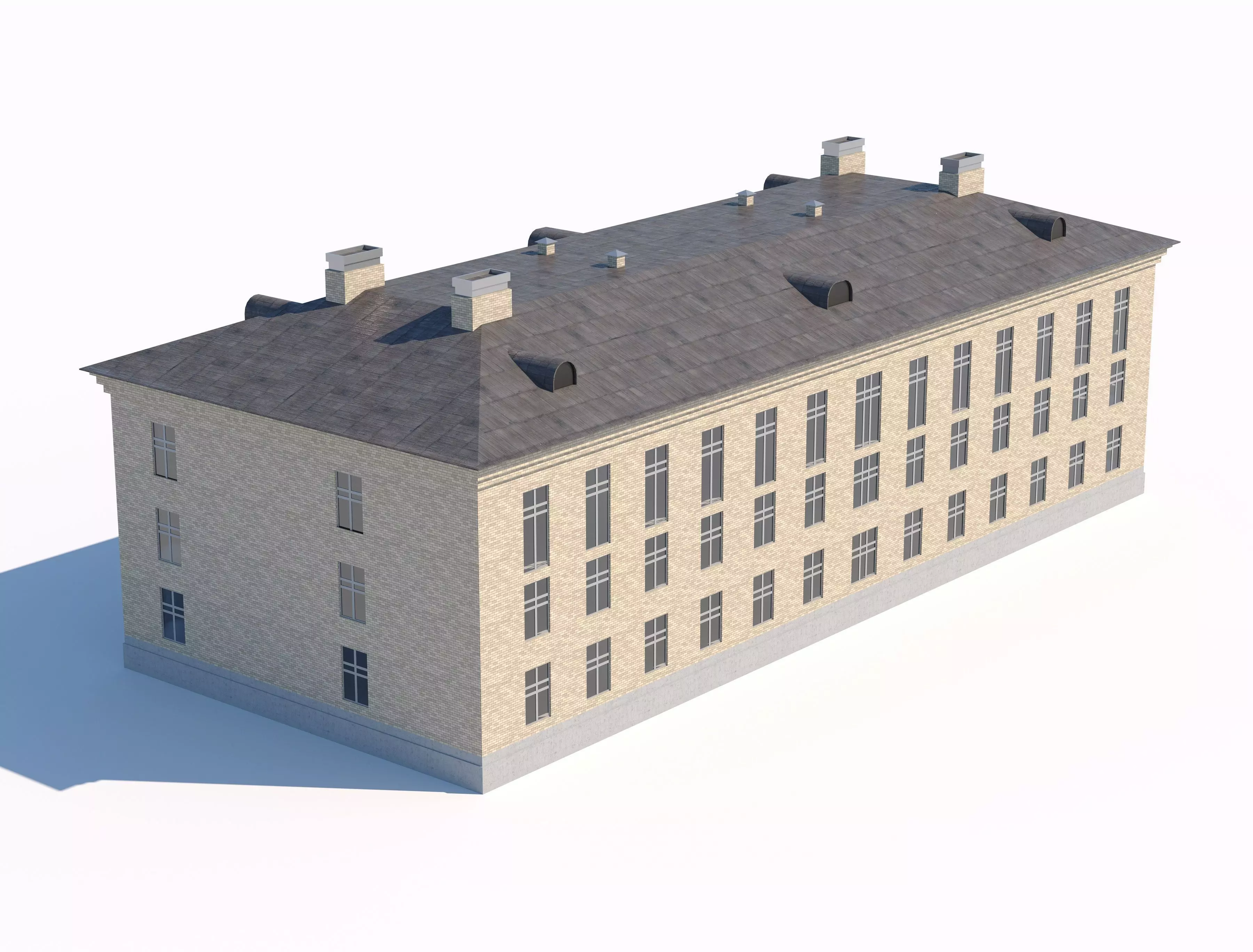 Classic brick residential building with pitched roof 3D model