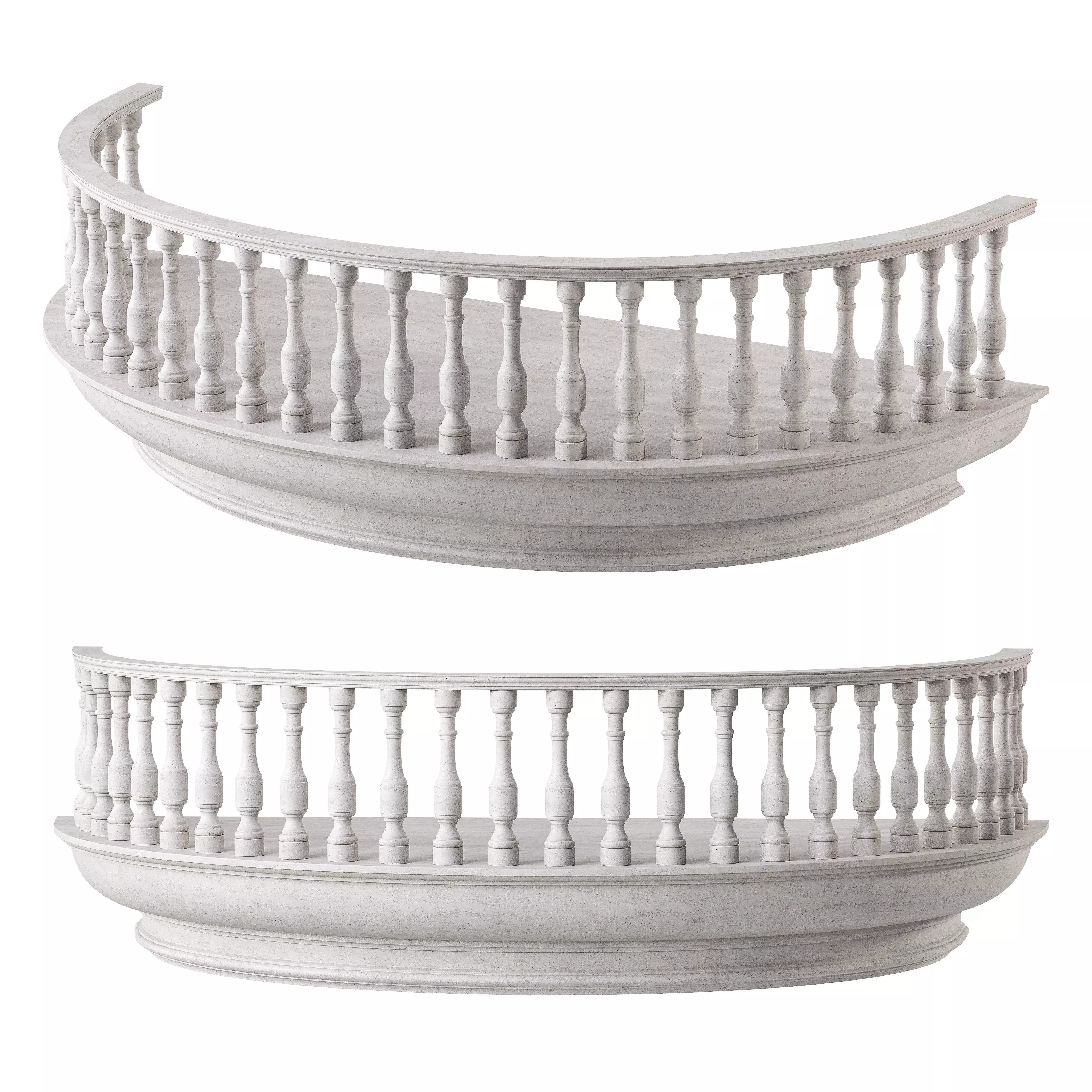 Classic Marble Balcony with Petite Balusters and Curved Elegance 3D model