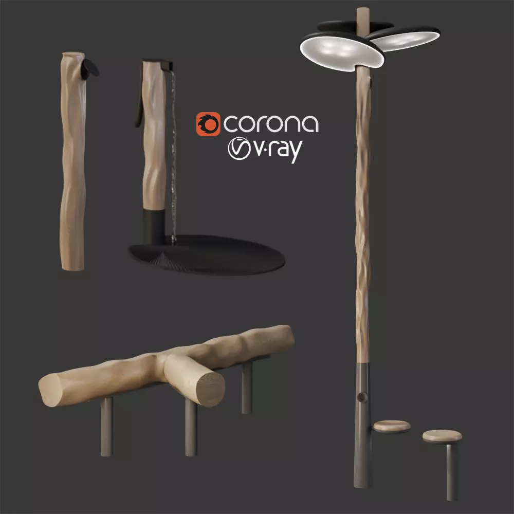 Clover are trees who mix energy, functions and materials. Hybrid objects parexcellence, combining light and seating, wood and solar panels, town and country.Designed from a carved wooden mast, floor lamp and bench seem cut and polished by the hands of a craftsman. They are in fact digitally machined according to an unprecedented industrial process allowing the use of many different wood species as the implantation region. From the same software and manufacturing process, a local wood supply is possible as if replanted a tree that always should have been there.At the top, fixed large aluminum domes distribute light by their LED exclusively directed downward to keep maximum light pollution of cities and energy loss. Another dome, faced upwards, is provided with solar panels that allow 3-hour-autonomy from solar energy. Important detail: a small hatch at hand will give access to a self-service charge for your smartphone.Finally, thought to multiple settings and configurations, « Clover » elements adapt themselves in height and length to spaces that host them. The bench can reach over 15 meters long as necessary ...I always dreamed of a long bench as a landscape ... at the landscape scale. This project was installed on the occasion of COP21 - United Nations Conference on Climate Change in Paris, 2015.This project was initiated and sponsored by the Poitou-Charentes french region under the leadership of its President Segolene Royal (currently France Minister for Ecology, Sustainable Development and Energy).