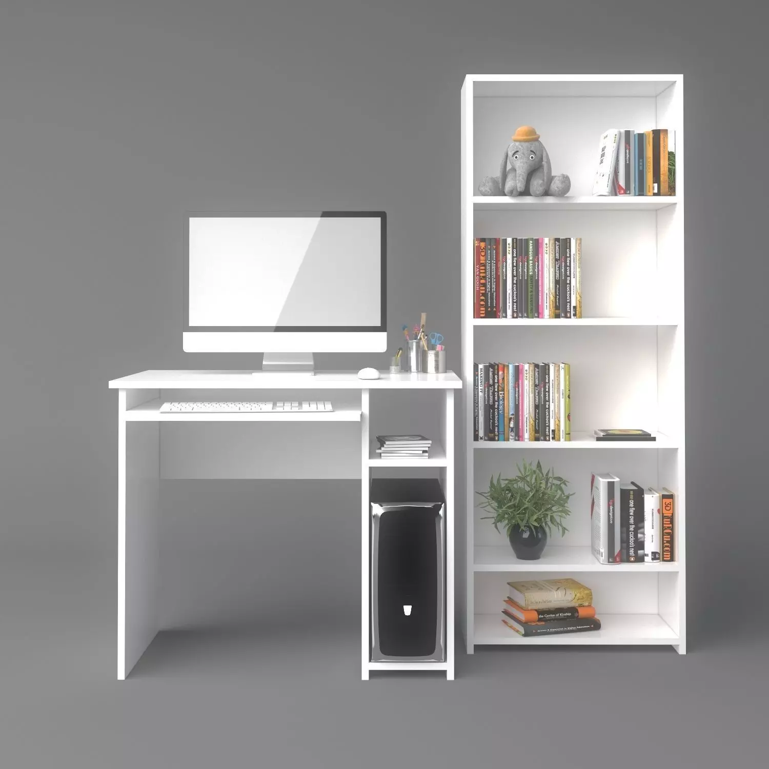 The model has material settings that define how surfaces look (color, shine, transparency, etc.).