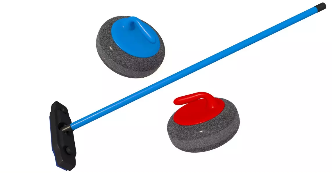Curling Stone and Brooms 3D model