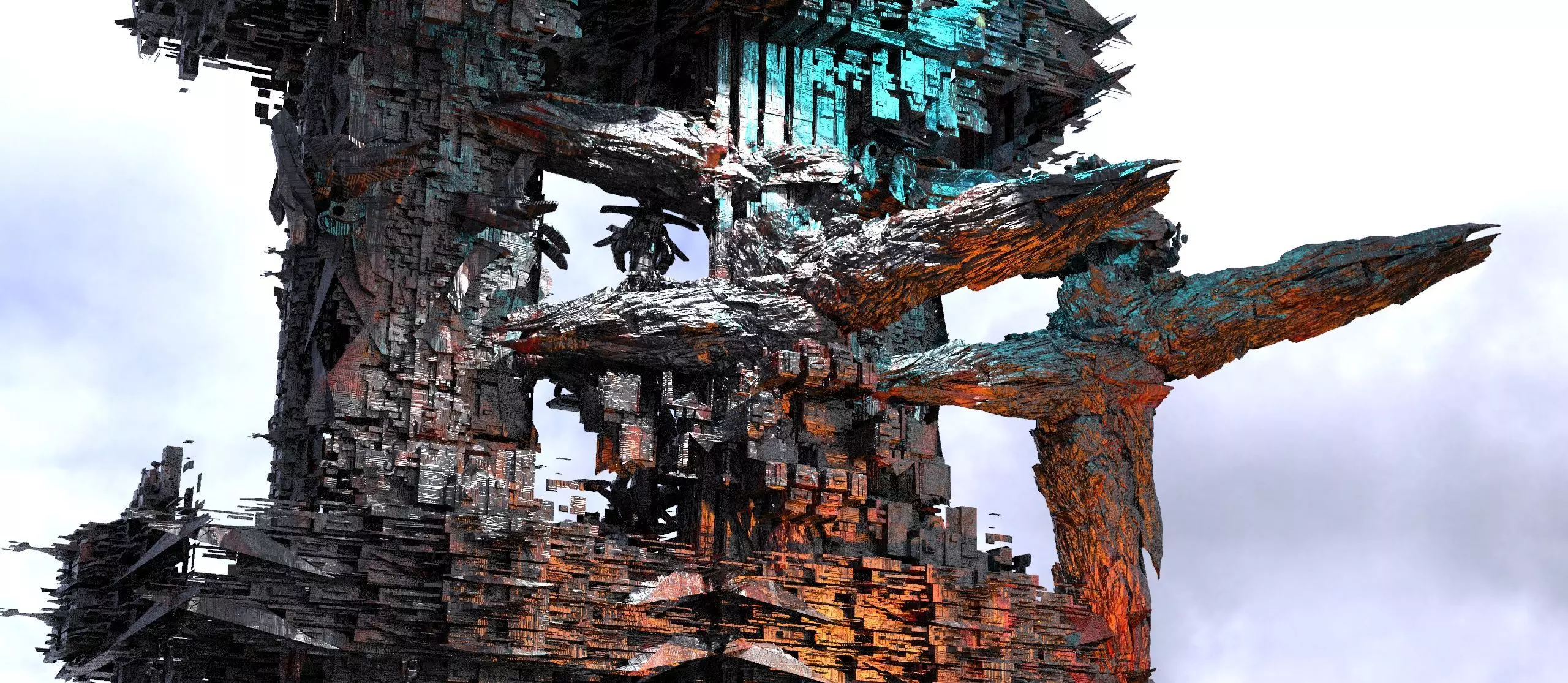 Cyberpunk asteroid tower city 3D model