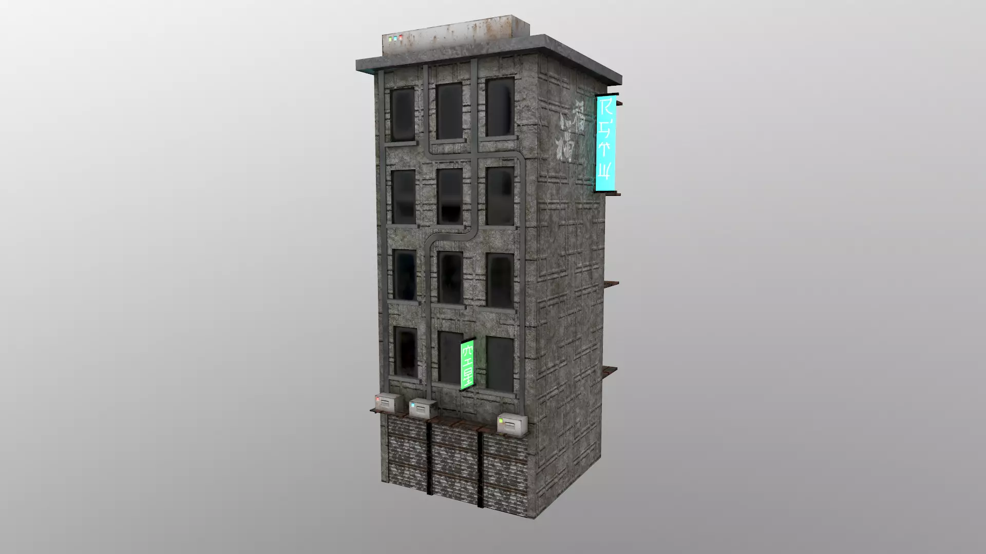 PBR game ready Cyberpunk City Building 14. Texture resolution 2048x2048
