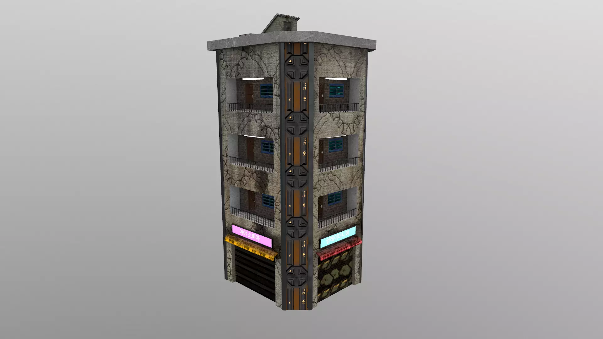 PBR game ready Cyberpunk City Building 39. Texture resolution 2048x2048