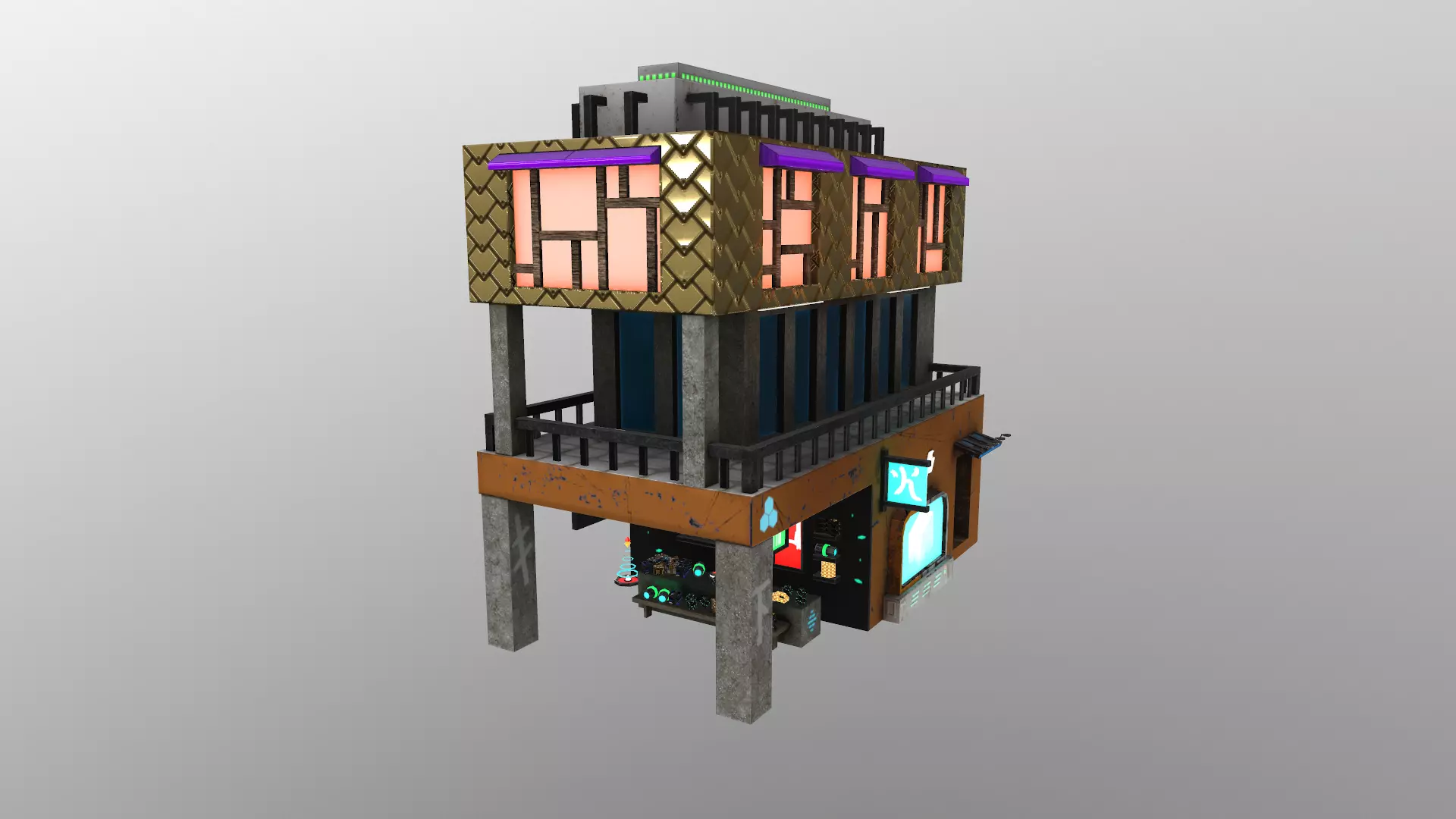 PBR game ready Cyberpunk City Building 6. Texture resolution 2048x2048
