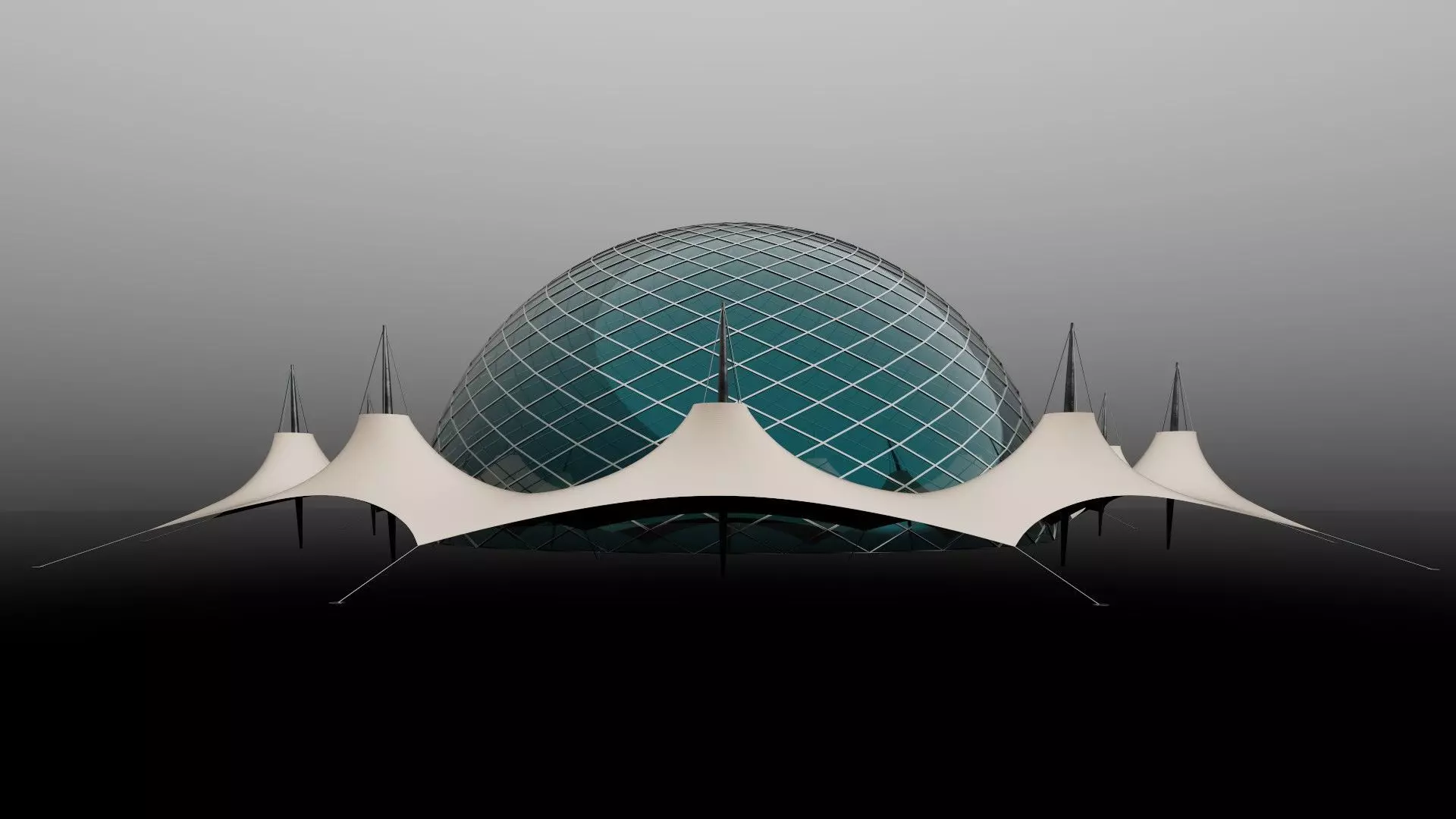 • High poly models of a truss, structure dome with a tensile tent structure.