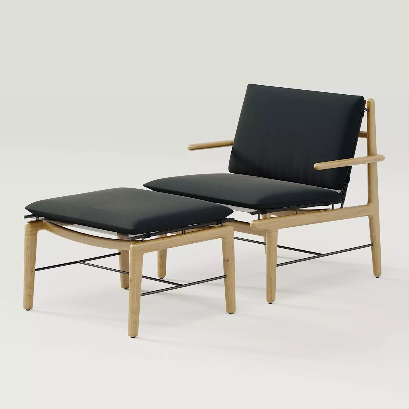 DWR Finn lounge chair + ottomanOutdoor furniture series: Finn Title: Finn lounge chair, Finn ottomanDesign by Norm Architects
