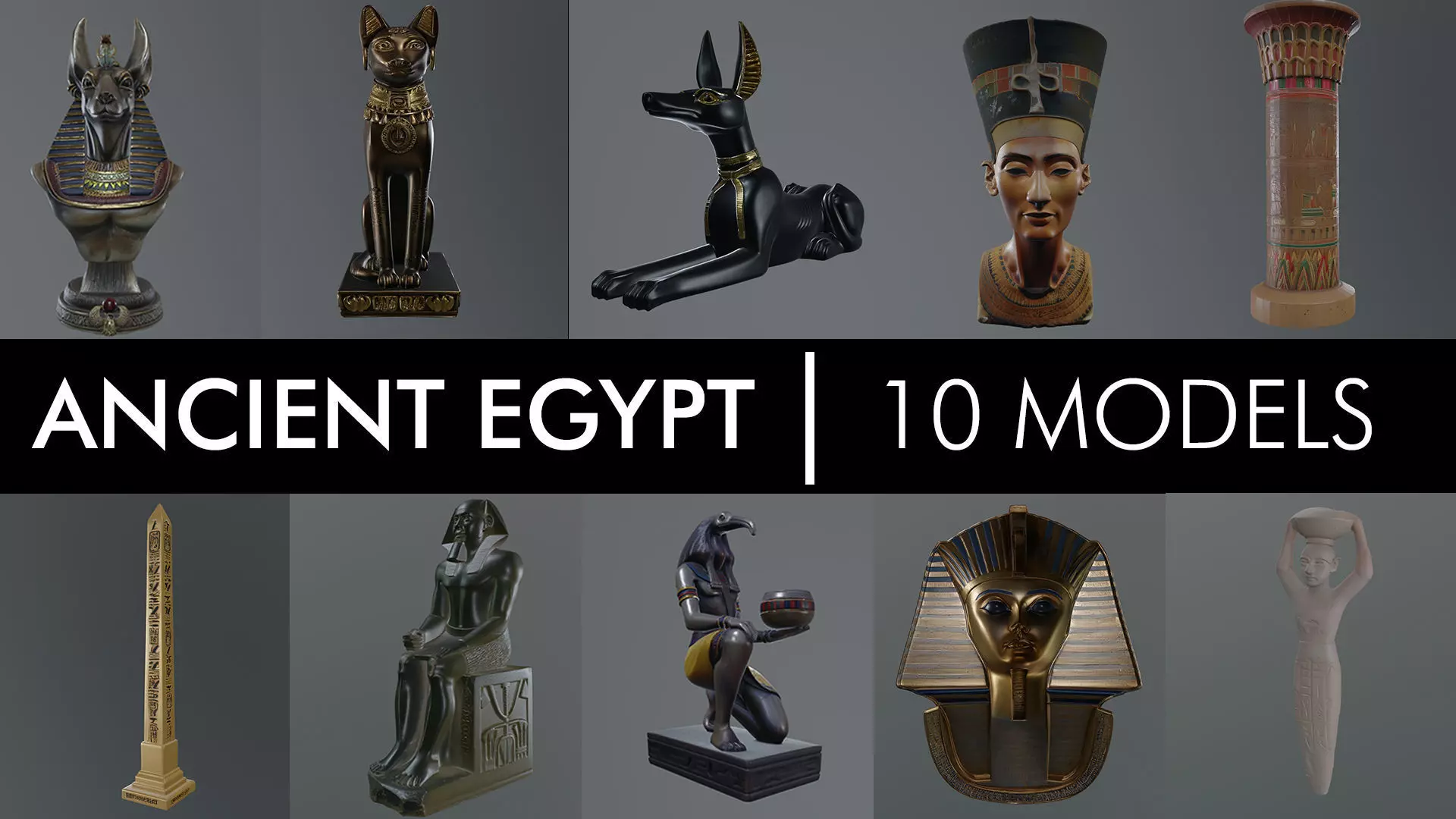 This collection features 10 meticulously crafted Ancient Egyptian–inspired 3D props, designed for use in games, cinematic scenes, concept art, and environment storytelling. Each model is based on iconic Egyptian motifs such as deities, royal busts, ritual statues, obelisks, columns, and ceremonial artifacts, capturing the distinctive aesthetic of ancient Egyptian culture. All assets are handcrafted in ZBrush and Blender, with attention to proportion, surface detail, and authentic ornamentation.