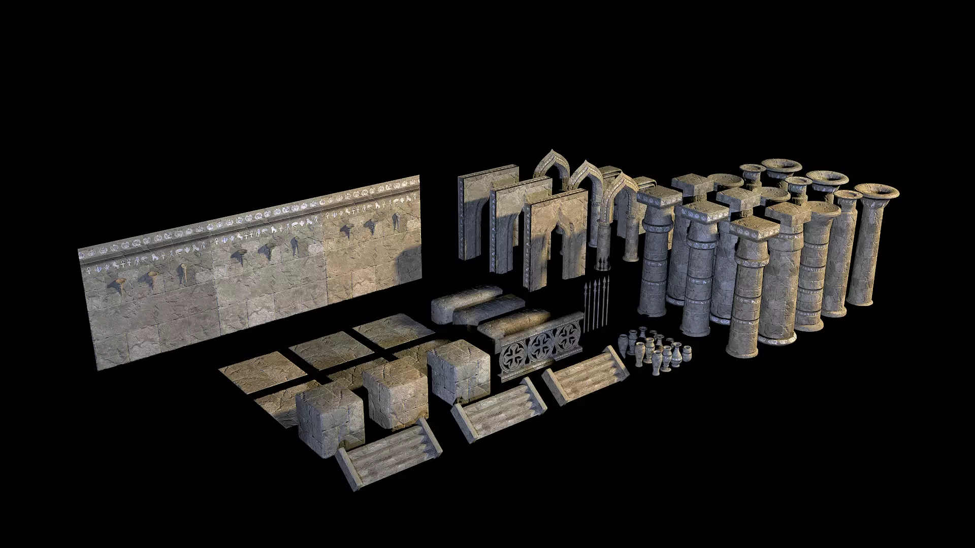 This kit can be used for bulding game locations and levels with egyptian atmosphere.