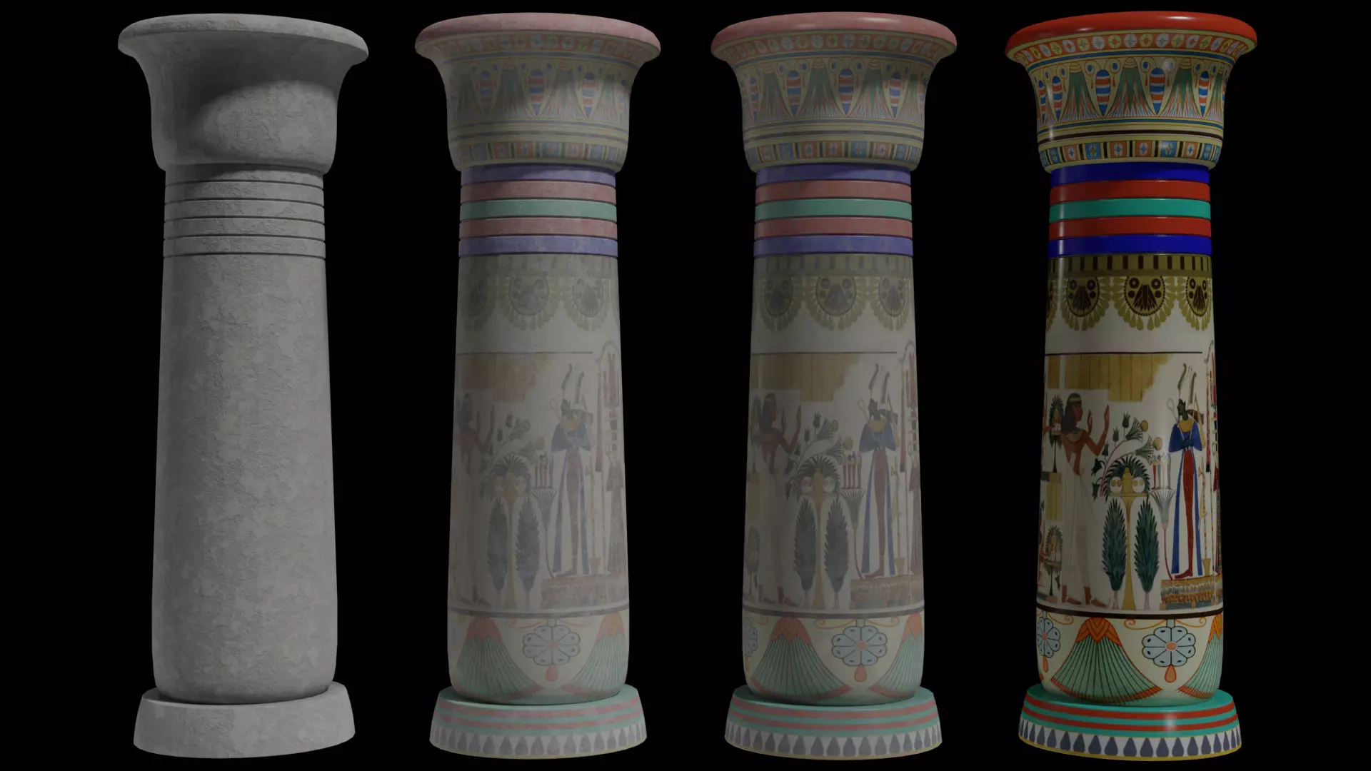 -Egyptian Pillar Model and 4 Material Sets... New, Weathered, Weathered2, Ancient.