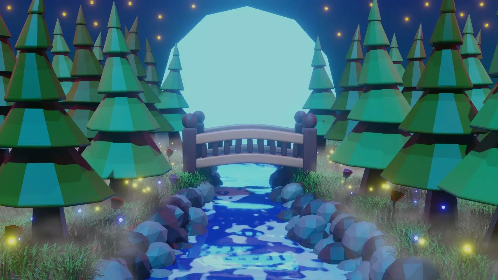 Fantasy Forest includes various techniques which I have used in order to create this beautiful scene with the best of my abilities. All the way from moving fog effects, fireflies flying around and water moving with light shadows. This scene can help you catch more attention to your personal project. Additionally, you may render this scene either as a video (to be able to see all the different unique animations added) or as an image using Eevee. I have done personal render tests to test its quality and so far I am very much satisfied with it's quality and hoping that you guys will be as well. This specific one is the night time version, however, I also have a sunset version which you can also check out in my account, if you are interested. Rest assured that you will not regret your decision in buying this rather intricate piece of art! and best of luck with your personal project as well!