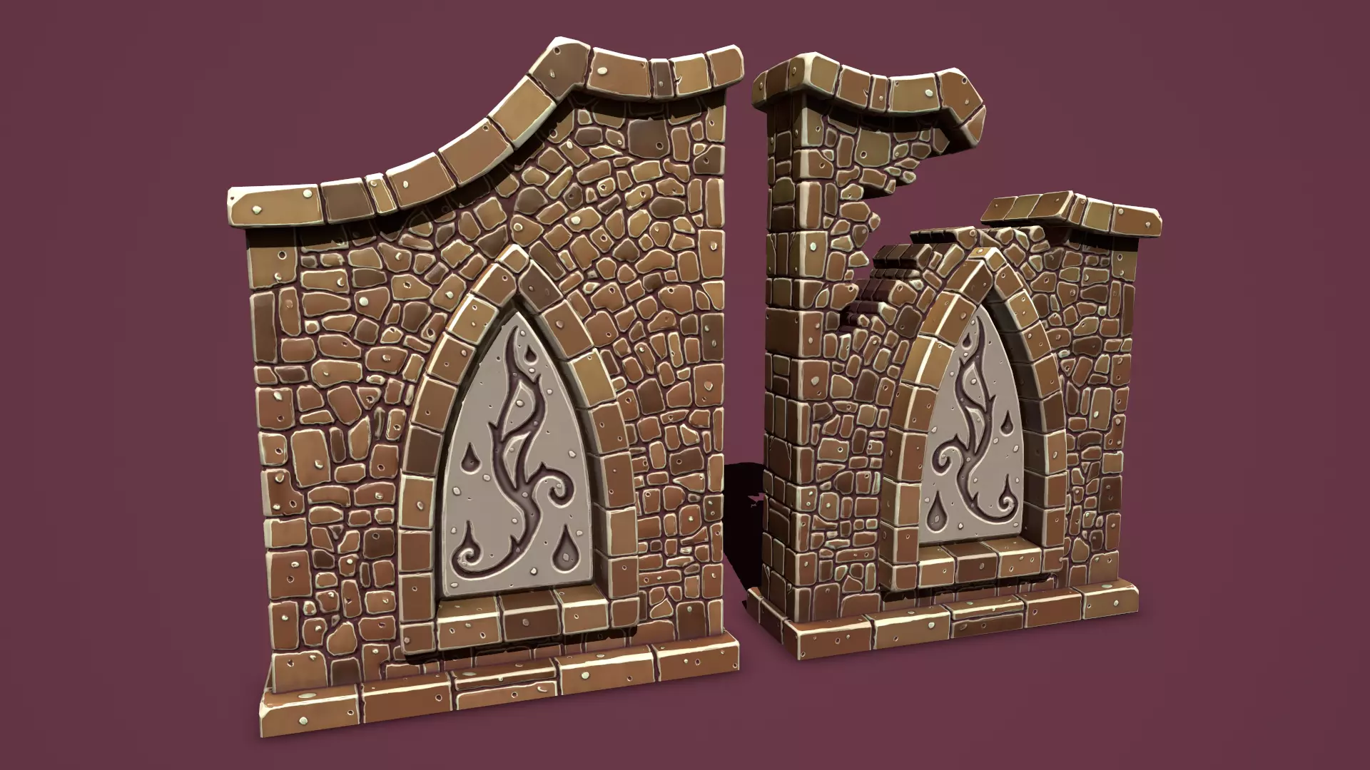 3 materials - Wall 1, Wall-1-Broken, Stone-Window
