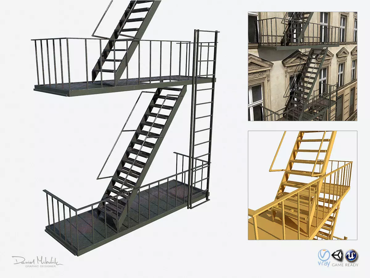 Fire Escape Stairs Modular Low-poly 3D model