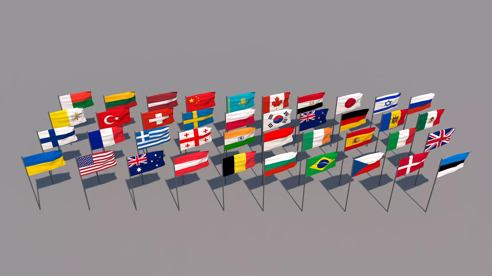Flag of 40 different countries Low-poly 3D model