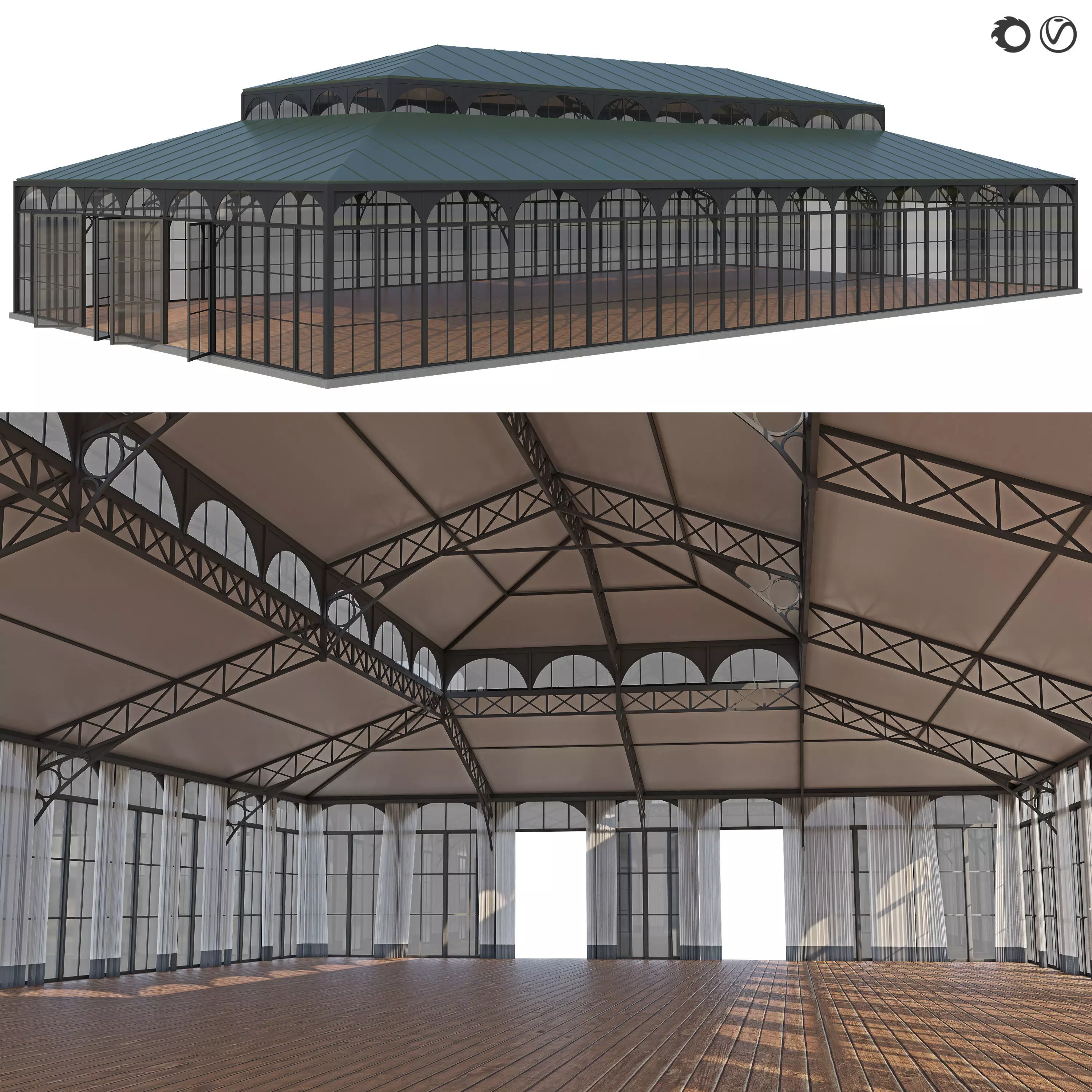The model has material settings that define how surfaces look (color, shine, transparency, etc.).