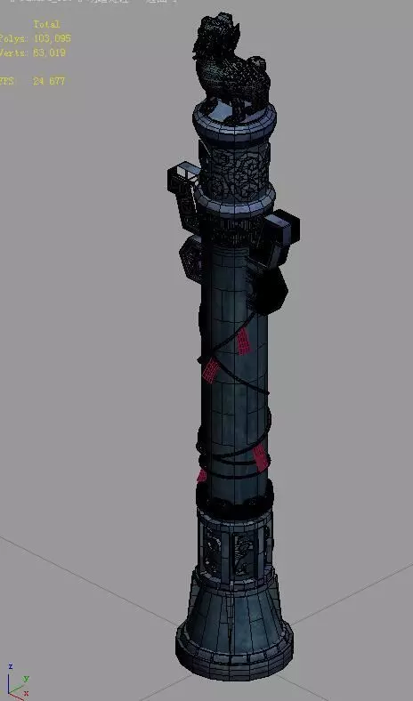 The model has material settings that define how surfaces look (color, shine, transparency, etc.).