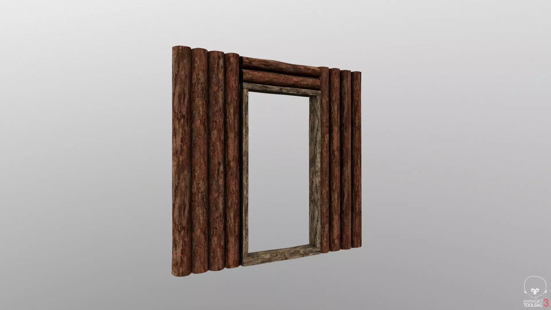 Game ready Wood wall whit door frame 3D model Low-Poly Low-poly 3D model