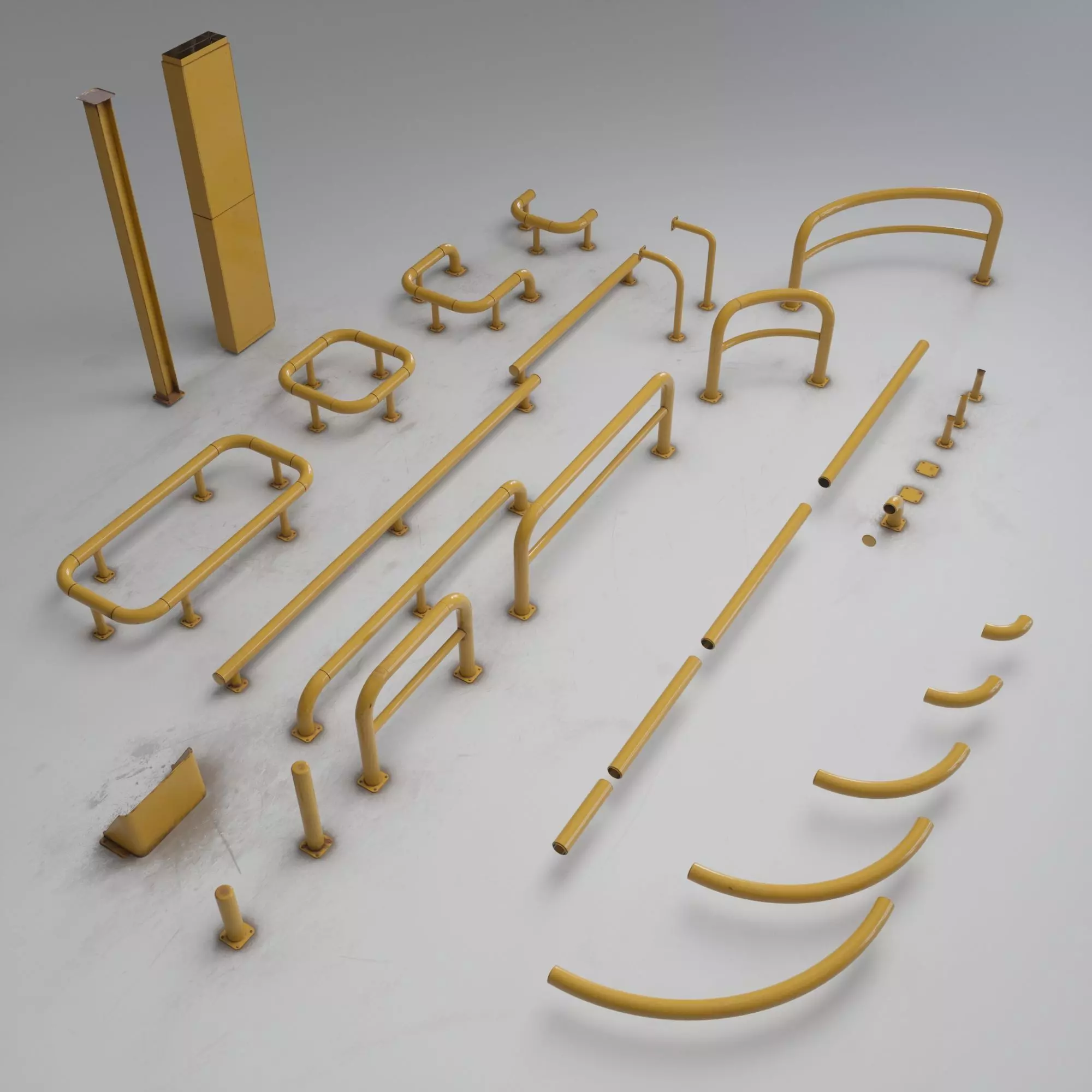 Garage Railing Kit is a versatile, high-quality collection of modular safety railings and industrial barrier elements designed for realistic environments such as garages, warehouses, parking areas, and urban scenes.This kit includes a wide range of components—straight rails, curved sections, bollards, protective barriers, and mounting elements—allowing you to easily build custom layouts for any project. Whether you're creating a detailed architectural visualization or a game-ready environment, this pack provides flexibility and realism.