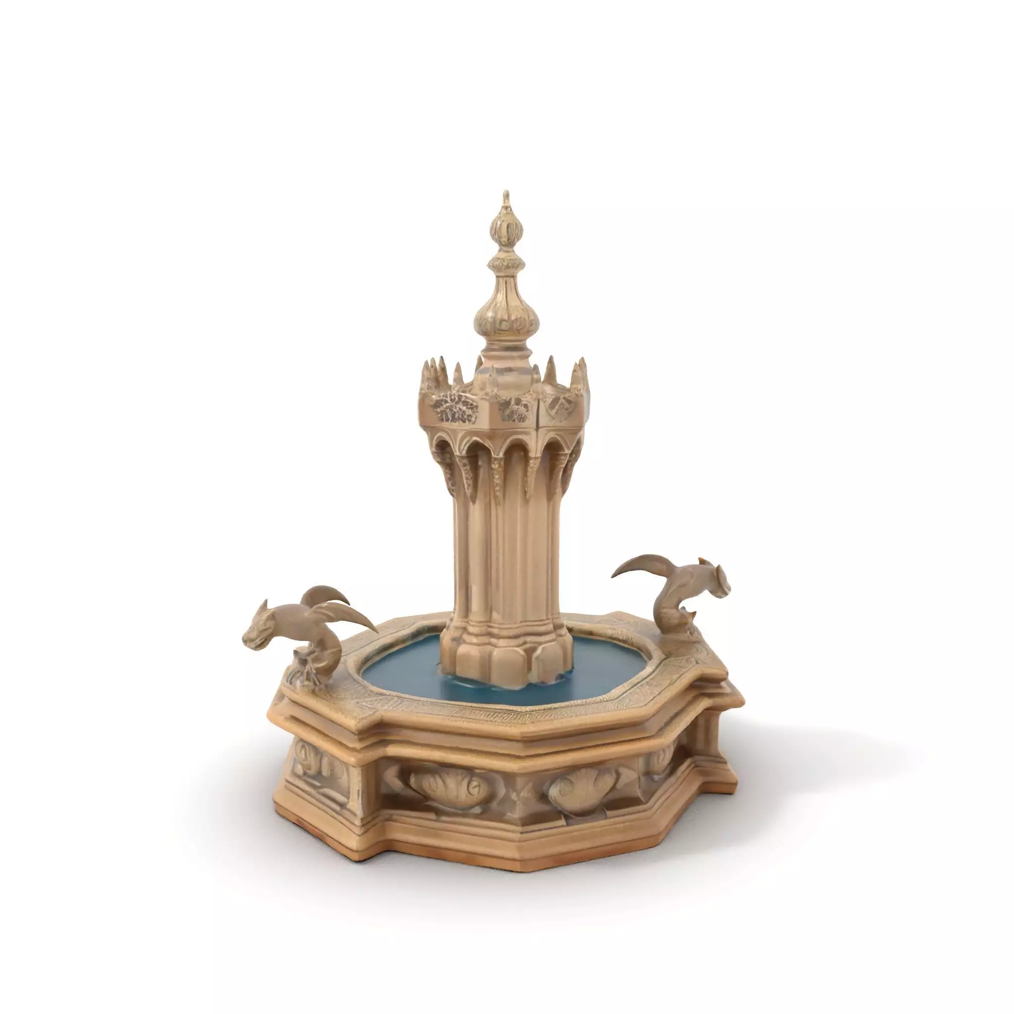 This Gothic Dragon Fountain model pack showcases an ornate, medieval-style fountain featuring intricate dragon sculptures. Perfect for historical, fantasy, or architectural visualizations, the fountain adds a touch of mystique and elegance to any scene. Each model has 3 levels of detail: low-poly (1000 triangles for mobile), middle-poly (10,000 triangles for environment), and high-poly (100,000 triangles), which allows for the use of this model in production rendering (such as 3ds Max, Maya, Cinema4D, Blender, Vray/Corona/Cycles and all others), game engines (Unity and Unreal compatible), and interactive presentations, providing a choice of detail based on the LOD System principle. The model's textures are PBR, Diffuse, NormalMap, and reflection/roughness/metallic, which are suitable for any modern rendering engine. All models are accurately unwrapped and have no overlapping UV. All textures are 4096*4096 in size. If you like this model, please leave a comment and a like!