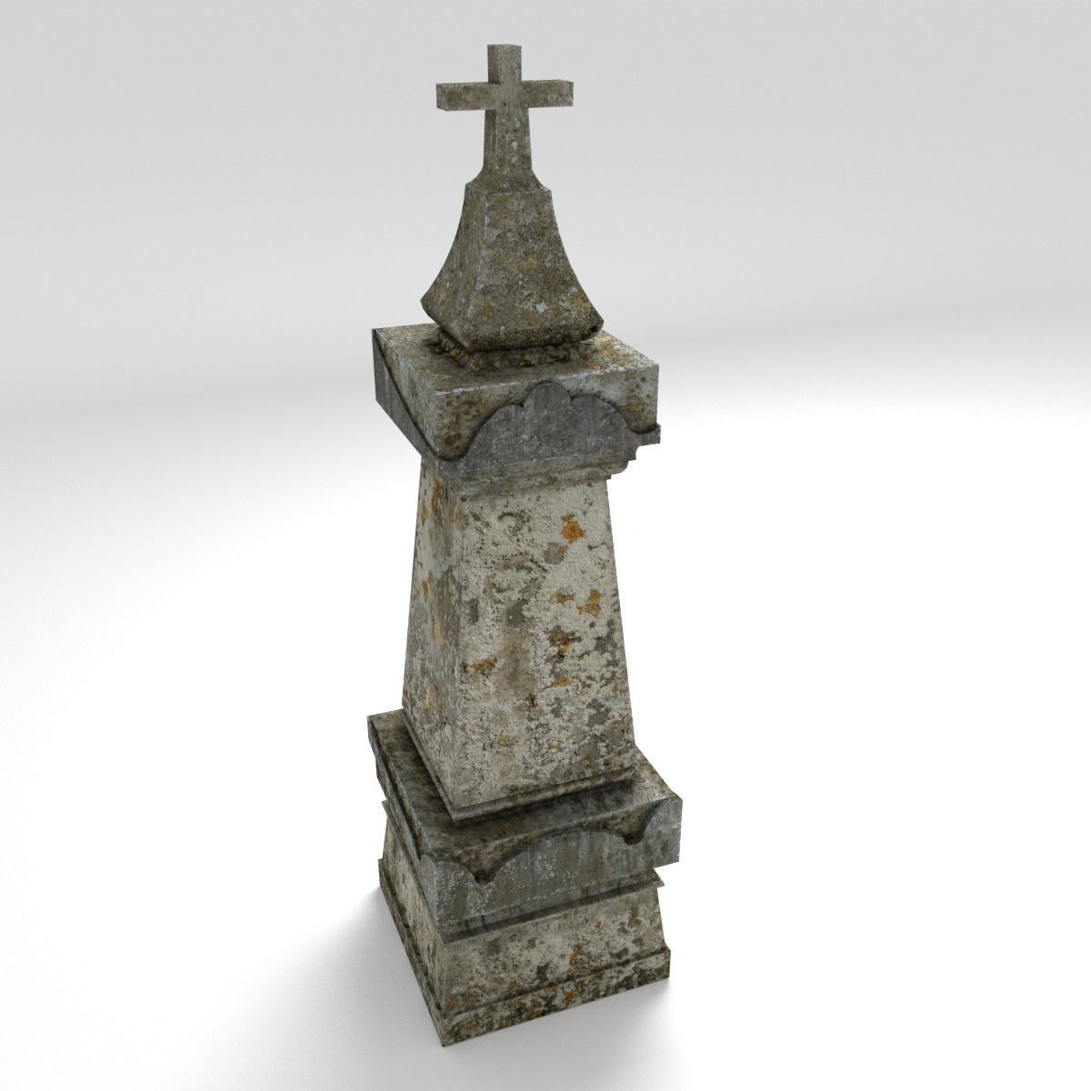 Grave stone monument with cross on top Low-poly 3D model