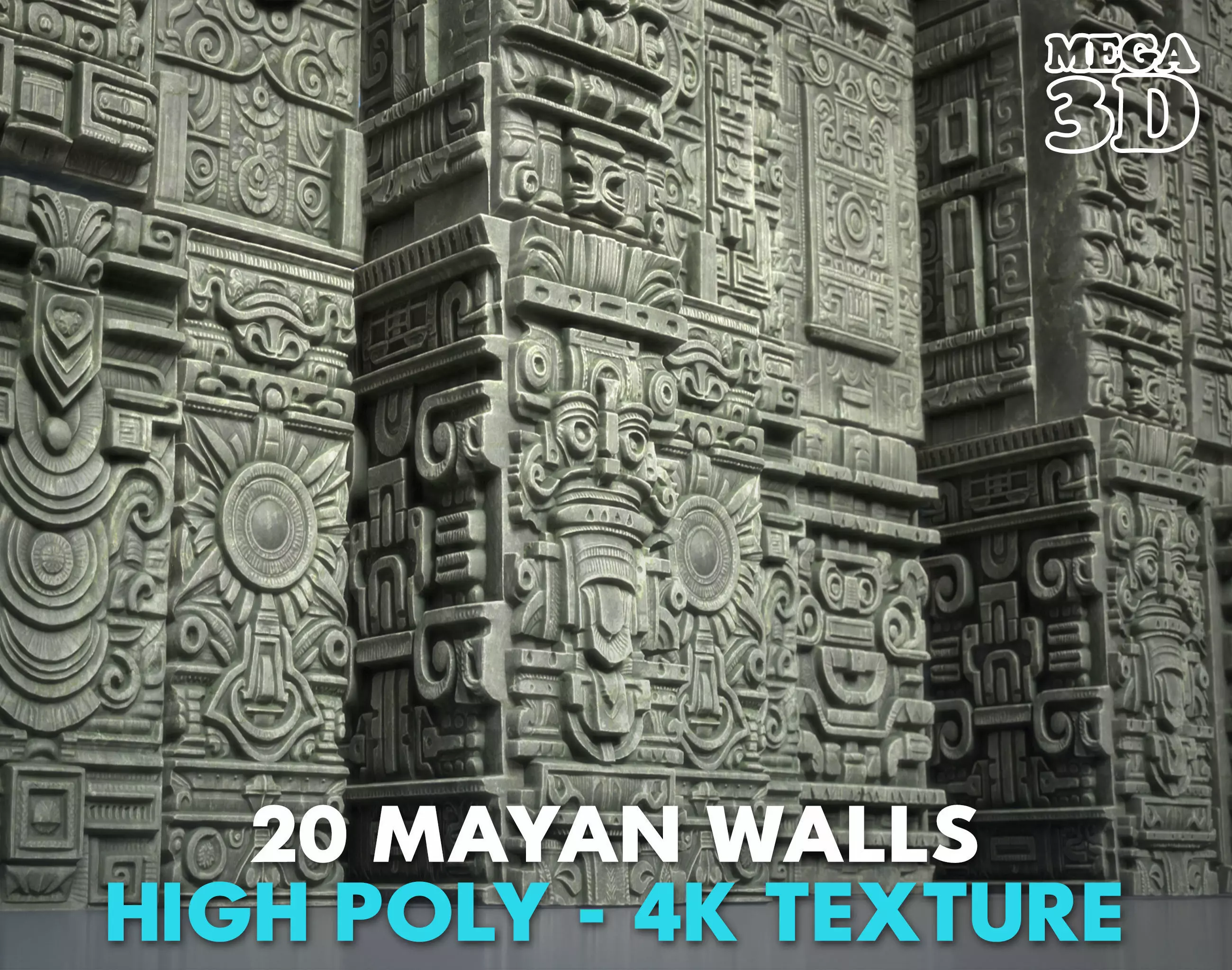 This product consists of 20 3D models of Mayan Walls. These models are decorated with patterns and characters, following the ancient Mayan style. You can use them to enhance the liveliness of your project.