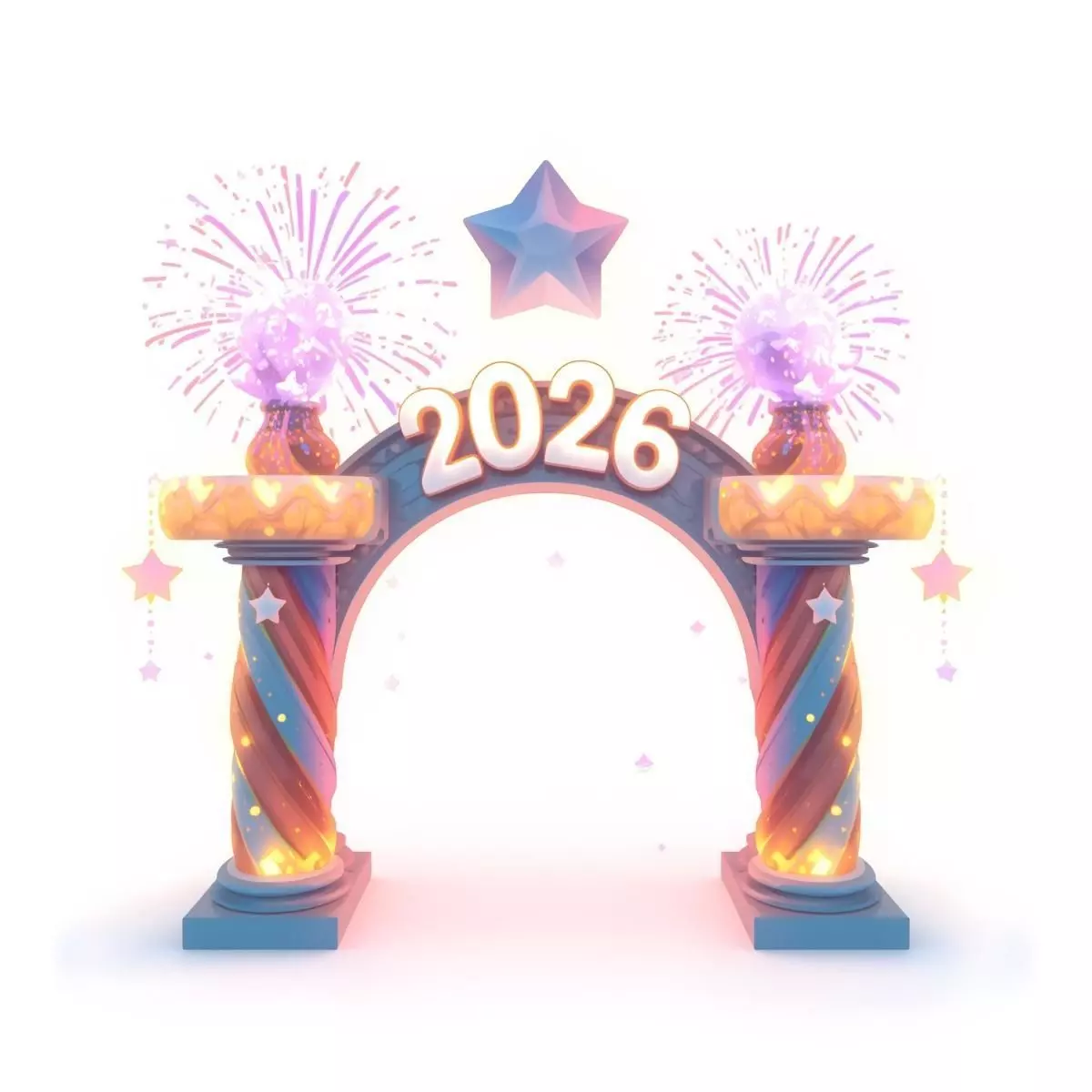 Tagsnew year, 2026, portal, gate, arch, fantasy, celebration, festive, holiday, fireworks, sparkles, glowing, cartoon, stylized, prop, 3d model