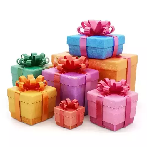 TagsA premium collection of high-quality 3D gift boxes designed with a playful, stylized cartoon aesthetic. This festive assembly features seven boxes of varying sizes, each wrapped in vibrant paper adorned with intricate embossed patterns and topped with large, elaborate silk-like ribbons and bows. With smooth geometry and high-detail material finishes, this asset is ideal for holiday-themed games, virtual celebratory events, or retail-focused digital content. The model is presented as a complete stack isolated on a clean white background for seamless professional use.