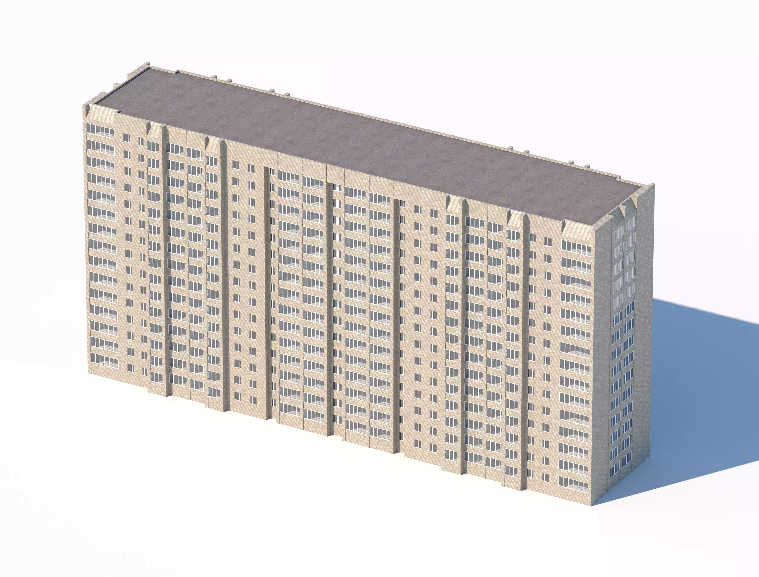 A detailed 3D model of a high-rise residential building with multiple balconies and a modern design. Ideal for urban visualization and architectural projects.