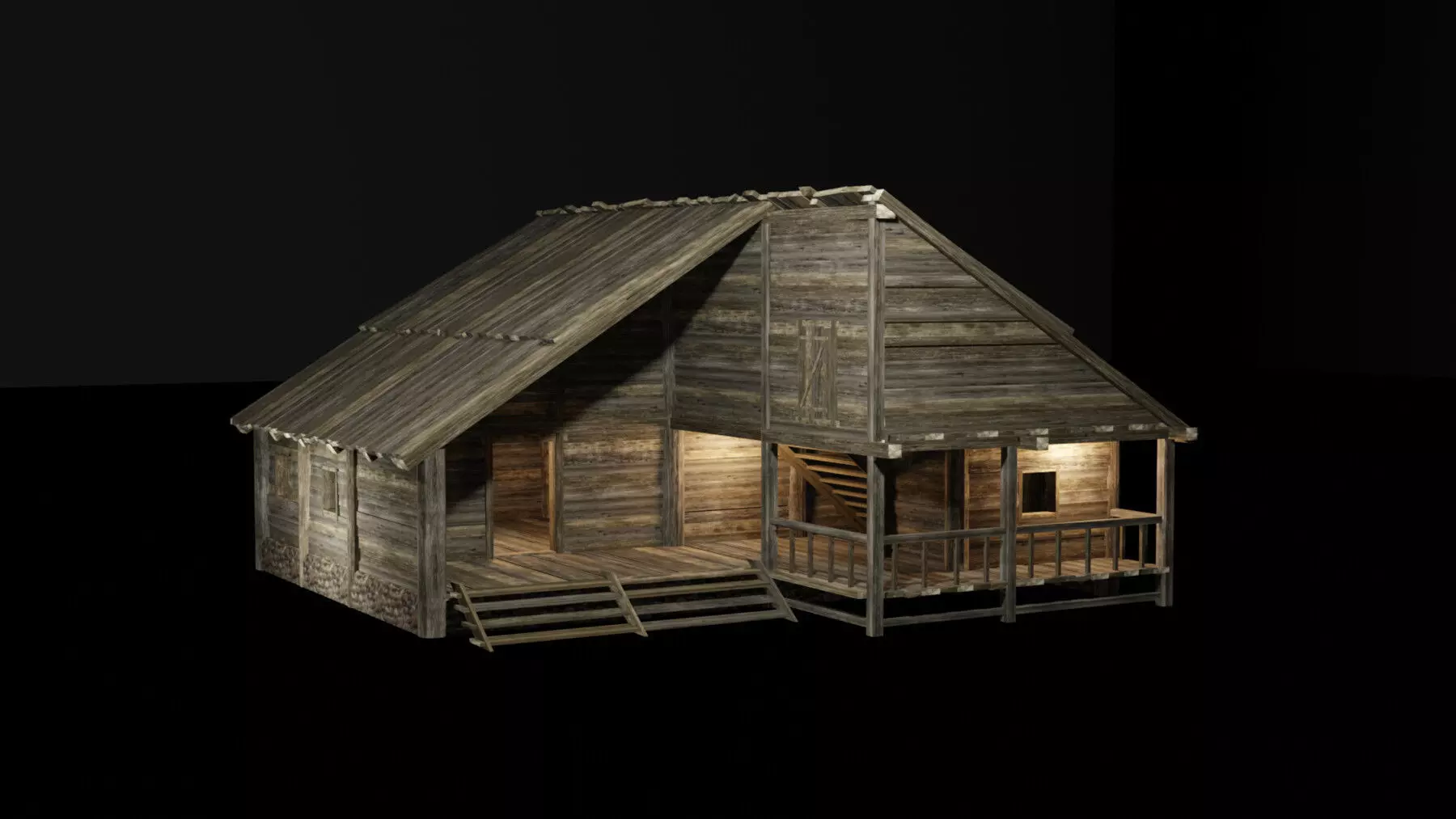It comes with a lowpoly module, ideal for optimizing and rendering games. The building consists of two floors, the second floor is an attic. The building is arranged as a small maze, in order to get to the second floor, you need to go through the first two rooms on the first floor. Inside, the building also looks neat and empty(without furniture and decorations).